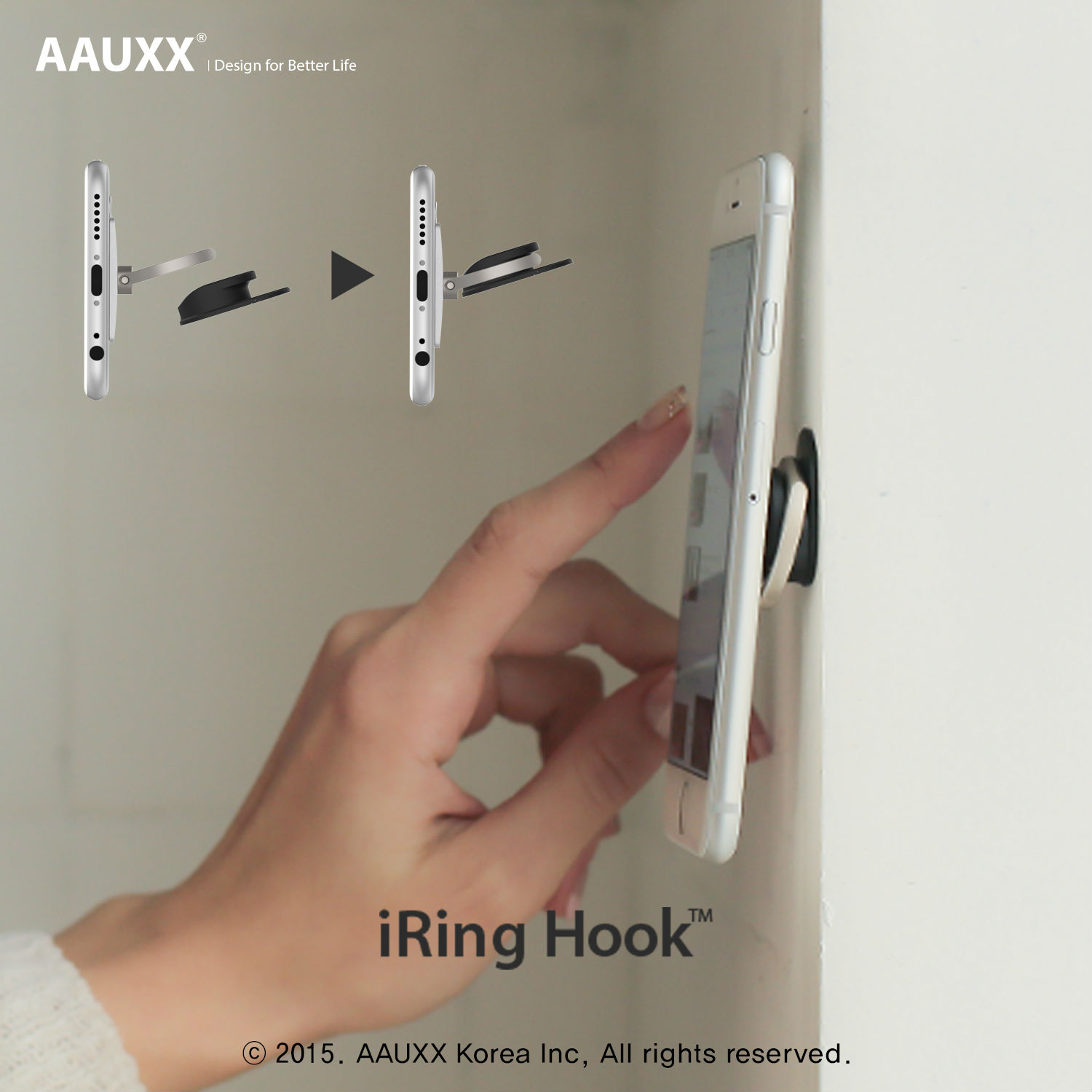 THE iRING HOOK Avoid unattractive and cumbersome car mounts with iRing Hook. Small and unobtrusive, iRing Hook couples with your iRing to provide an in-car solution for your travelling needs. On your dashboard, rear-view mirror, or centre panel, iRing Hook allows you to place your smart phone in the location that's most convenient for you. Please note that the iRing hook is not re-attachable (i.e. it can only be attached to a surface once)