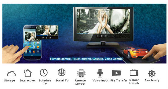 The basic idea is that it allows users to control their smart TVs using smartphones or tablets as remote controls, switching channels, changing volumes.