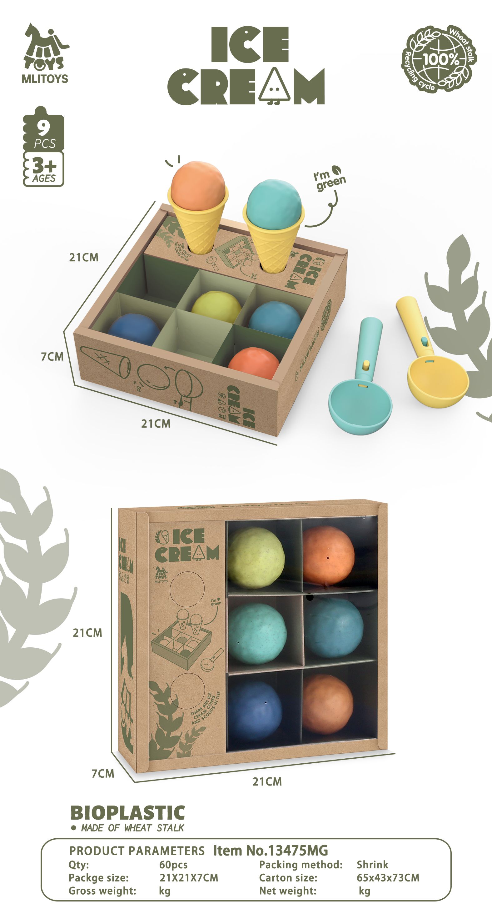 13475MG, ice cream ,baby toy ,color recognition ,green toys is made of wheat stalk
