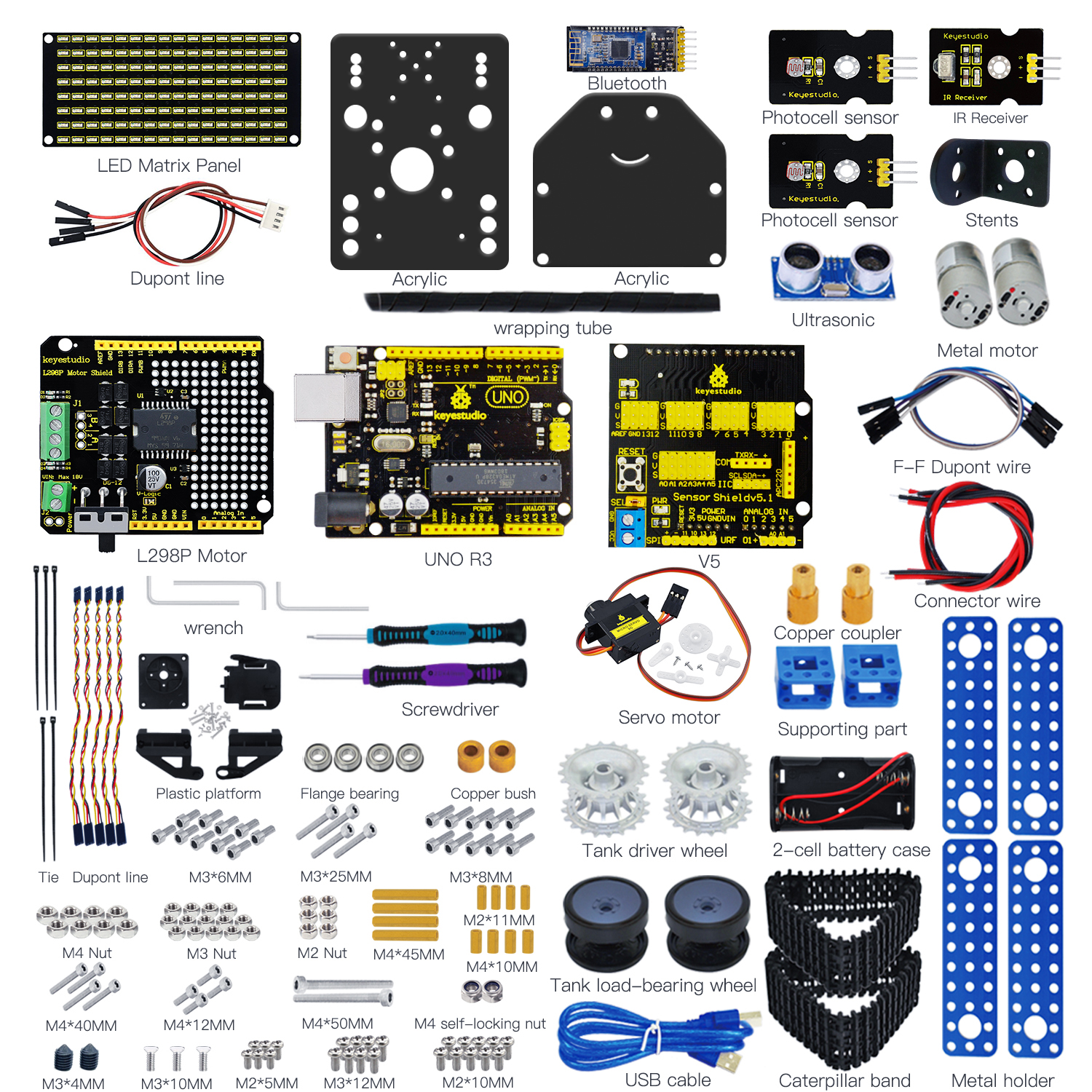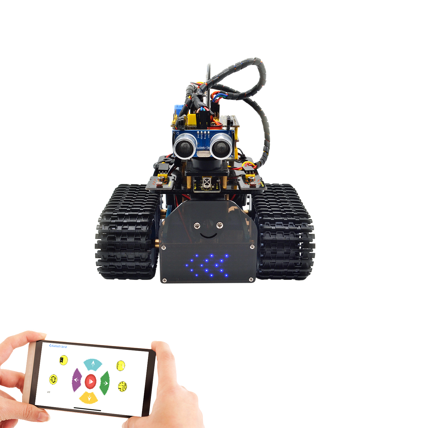 The tank robot kit is designed specifically for those who are interested in learning about Arduino and electronics.