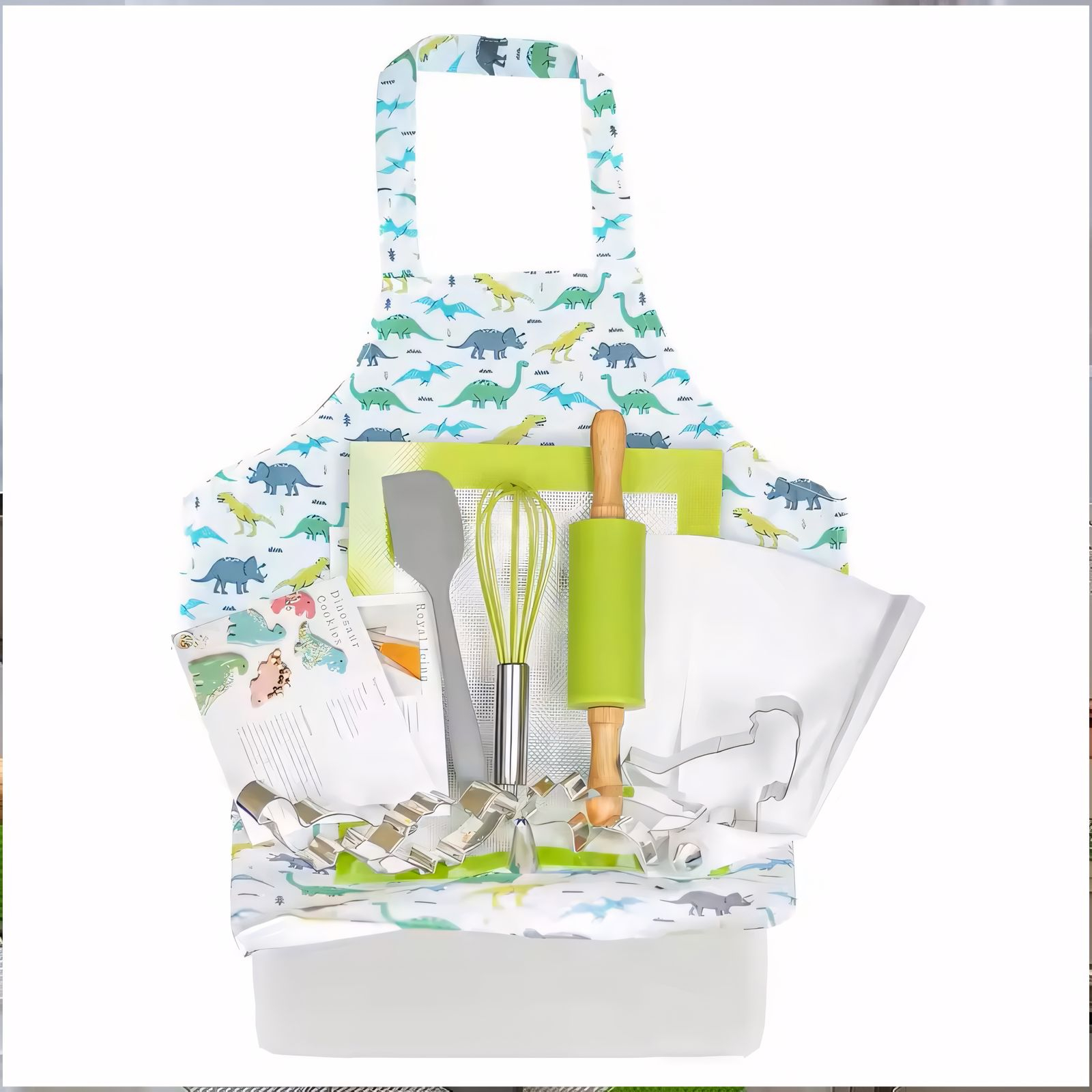 | Shapes | girls and boys aprons children safe real cooking baking kit supplies kids cooking set 1 piece of wooden kids knife 1 piece of cooking knife 3 pieces serrated edges kids knives 1pieces cutting board 1 piece Y peeler, 4 pieces sandwich cutters 1 piece crinkle cutter | Fits For | HELP YOUR TINY CHEFS UNLEASH THEIR CULINARY SKILLS with our high-quality cooking set for kids. This set includes some value for money, durable and toddler-safe baking tools to create their favorite delicacies |