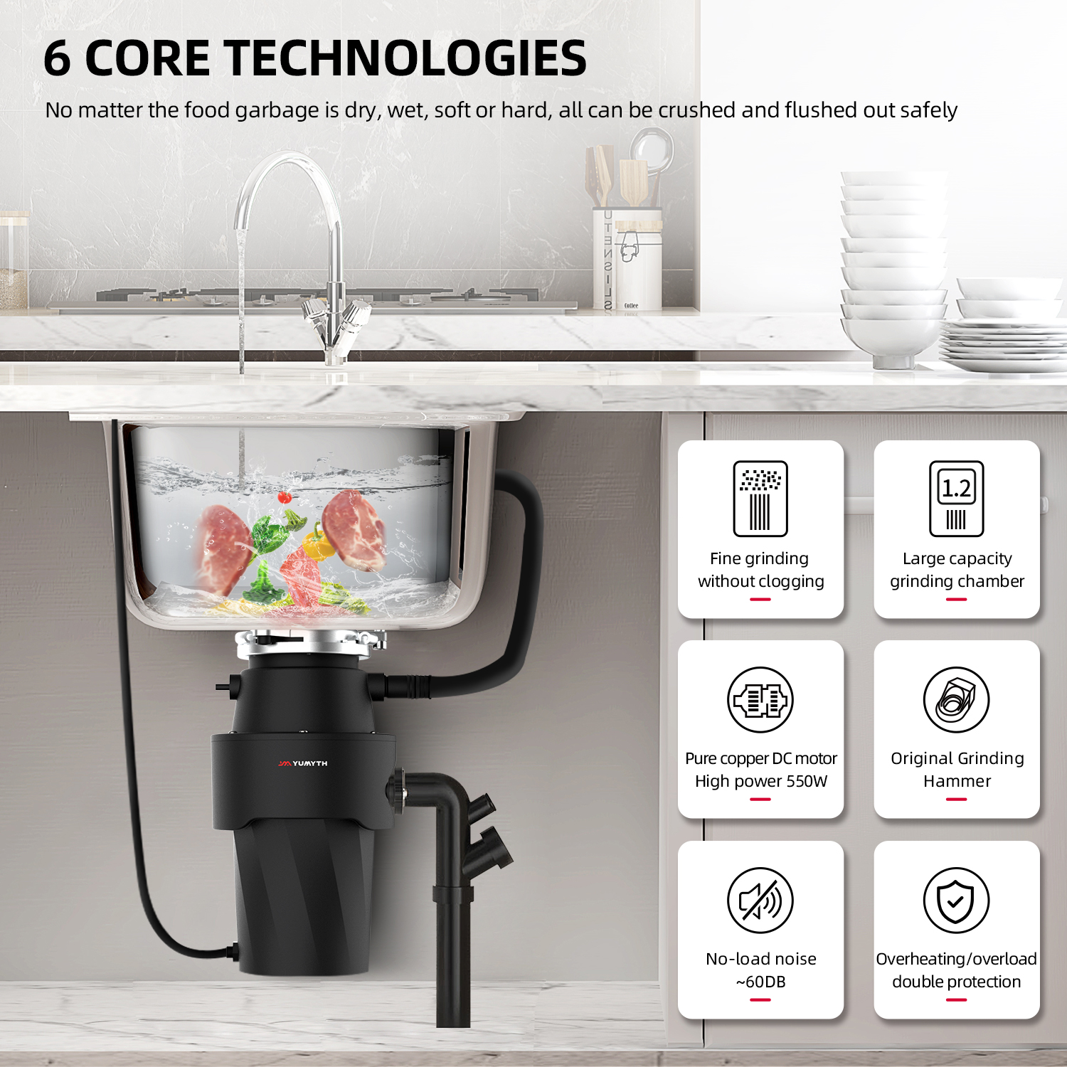 FD1101 is a DC motor food waste disposal with an upgraded grinding system, which can dispose kitchen garbage quickly.