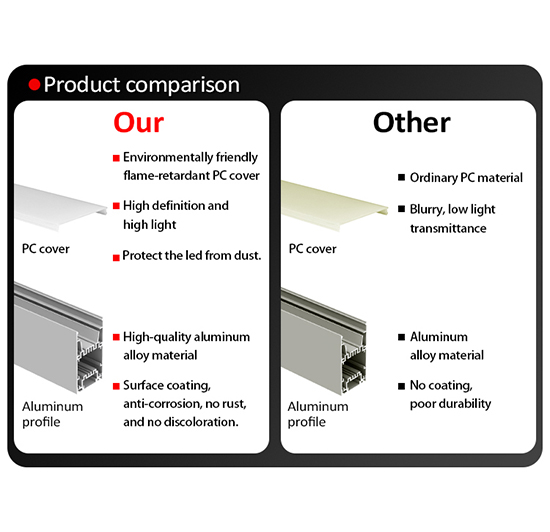 Our product field covering mould making,PC profiles, LED linear light housing ,Led strip light housing, and LED tube light housing, and etc. We provide One-stop service for customized products from mold design, mold-making, to product extruding or injection.