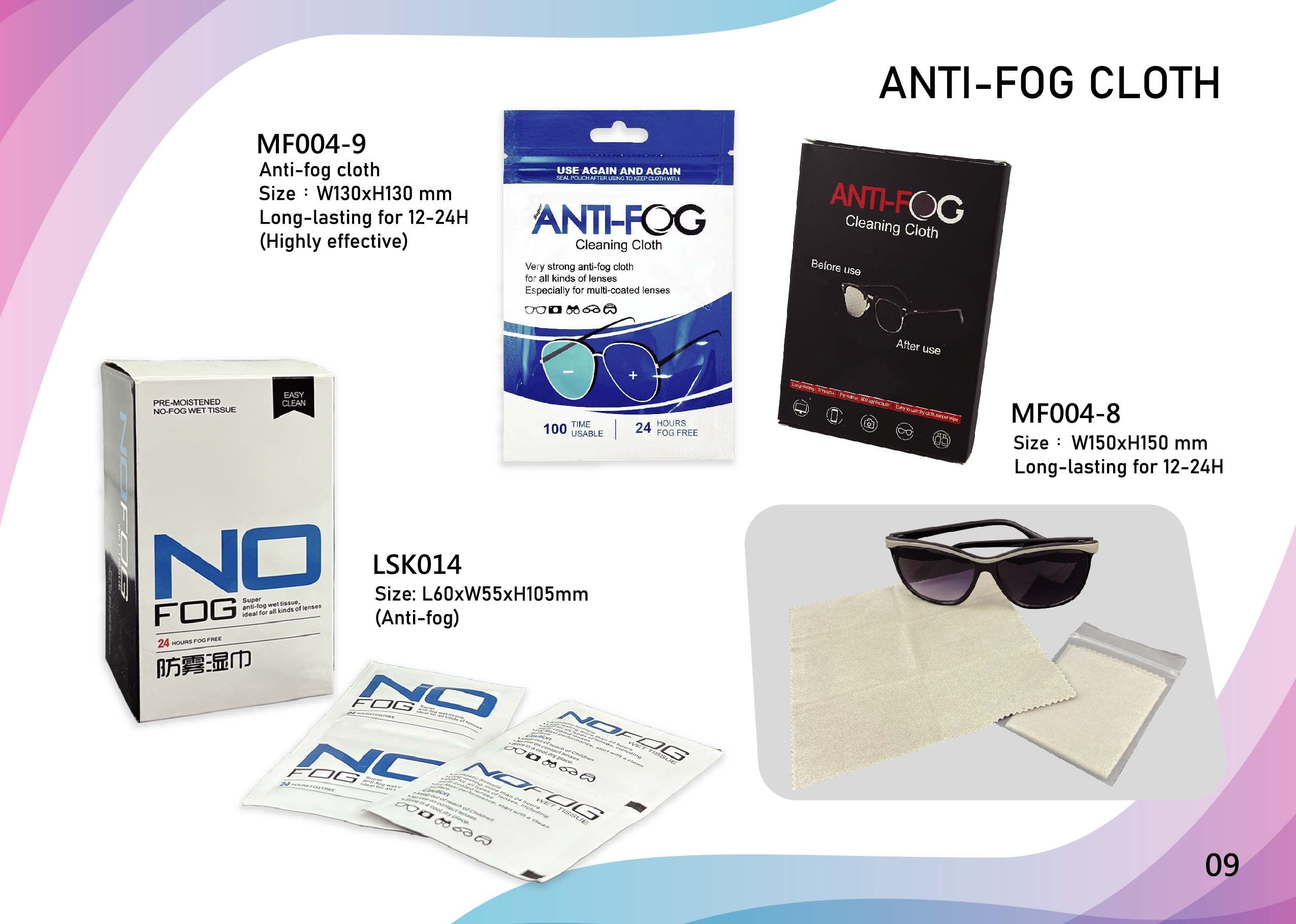 Anti-fog cleaner is also available.