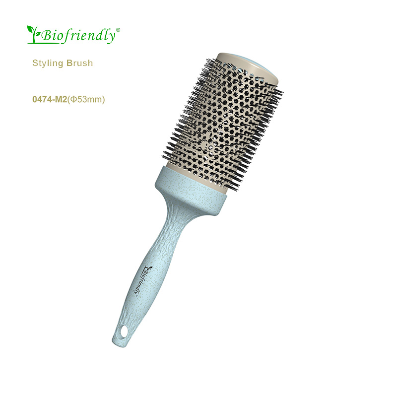 •Material:bio-based material ,eco-friendly and low carbon •Brush material:Nylon •Diameter:53mm •Weight:110g •Without middle ring,hair never get stuck •Anti-strips with smooth circle in the middle making handle control and rotation easily •Usage:Home Beauty Hair Salon •MOQ:4800pcs each color less than 4800pcs can be acceptable •Color:Green,Blue,Pink,Beigecolors areavailable; Can customize color follow pantone No.# •Logo:1 color on 1 position, customized •Package:12pcs per inner box,120pcs/ctn carton size:79*54*49.5cm