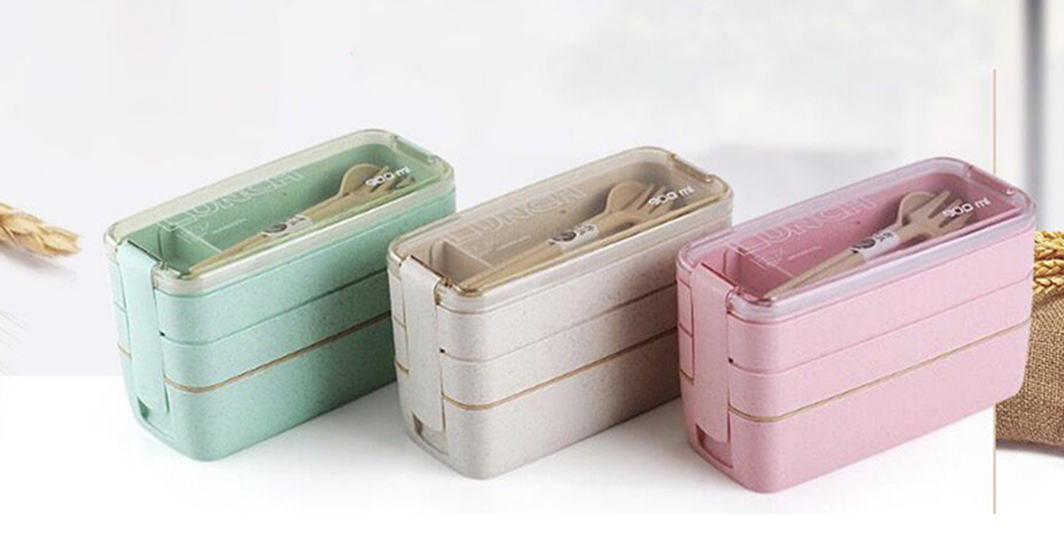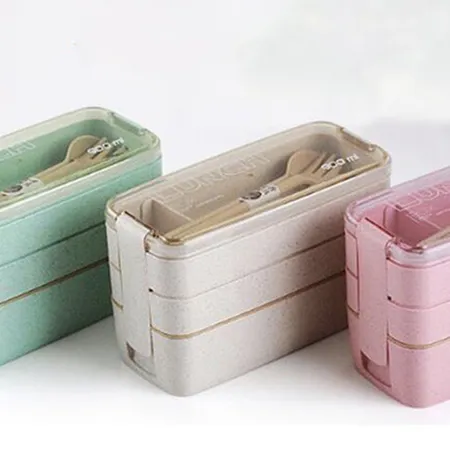 lunch box made from bamboo fiber and PP,make it eco-friendly,removable 3 compartments