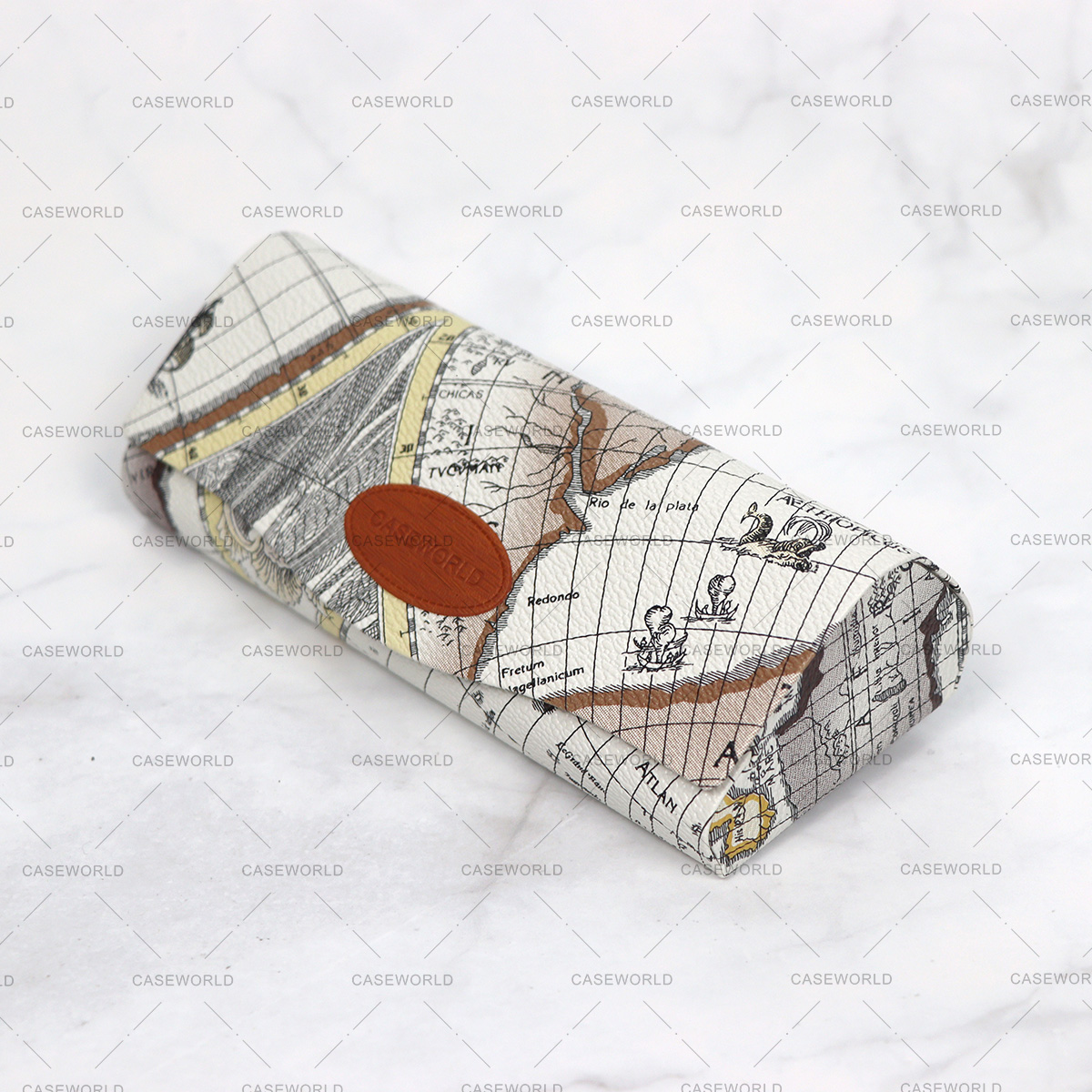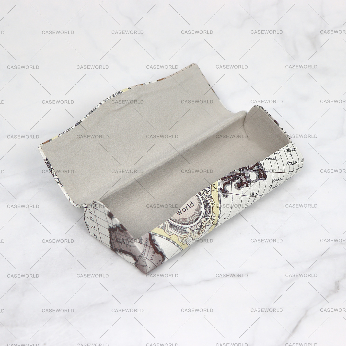 Covered with high quality PU, decorate with map grain PU.this case is made to be attractive to different kind of customer and can safely protect your glasses.