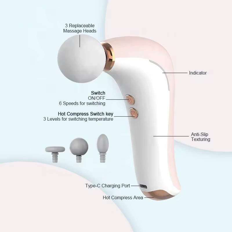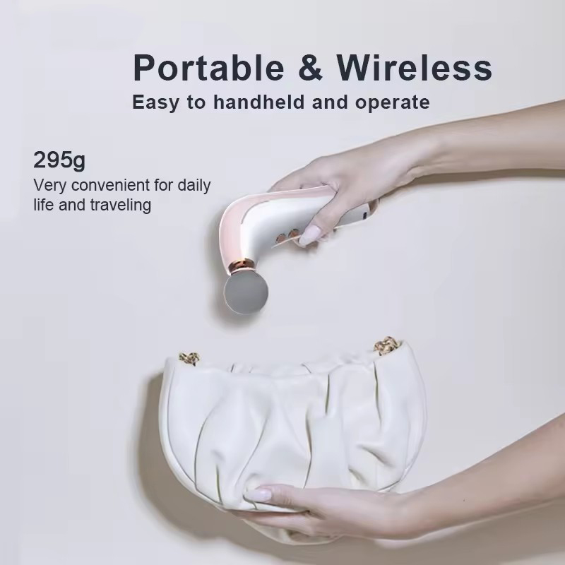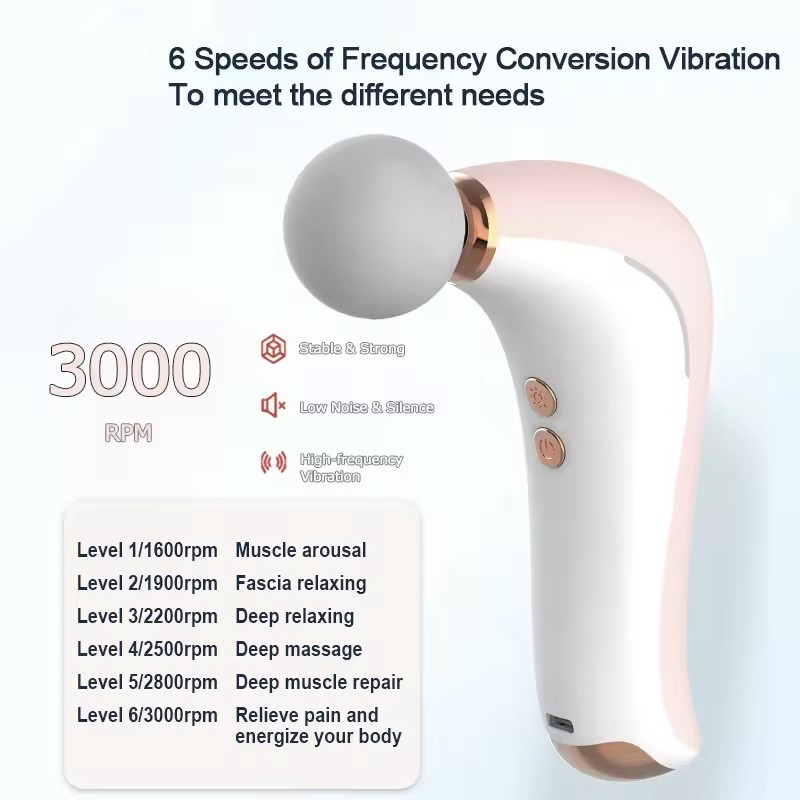 6. 5 speeds percussion function with LED indicators: Blue color 1400RPM, Pink color 1800RPM, Deep Pink 2100RPM, Red 2300RPM, Light Red 2500RPM, Bright Red 2800RPM