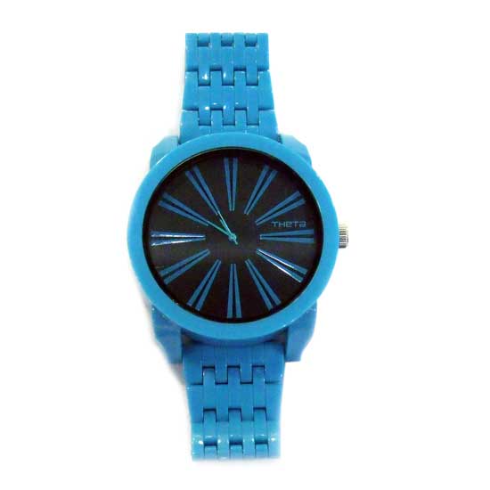 This is a stylish silicone watch that is made with a plastic structure in blue. The black dial face has three hands and long-stick hour markers. This well-designed timepiece is an ideal choice to complete your outfit.