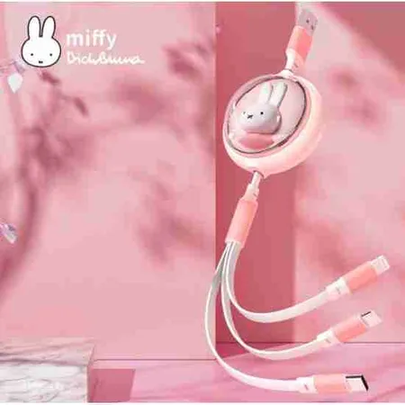MIPOW X miffy 3 in 1 Retractable Multi Charging Cable, 4Ft/1.2m, 3A Fast Charger Cord for iPhone Lightning/Type-C/Micro-USB Compatible with Cell Phones/Tablets/Samsung Galaxy/Pixel/Sony/LG/HTC