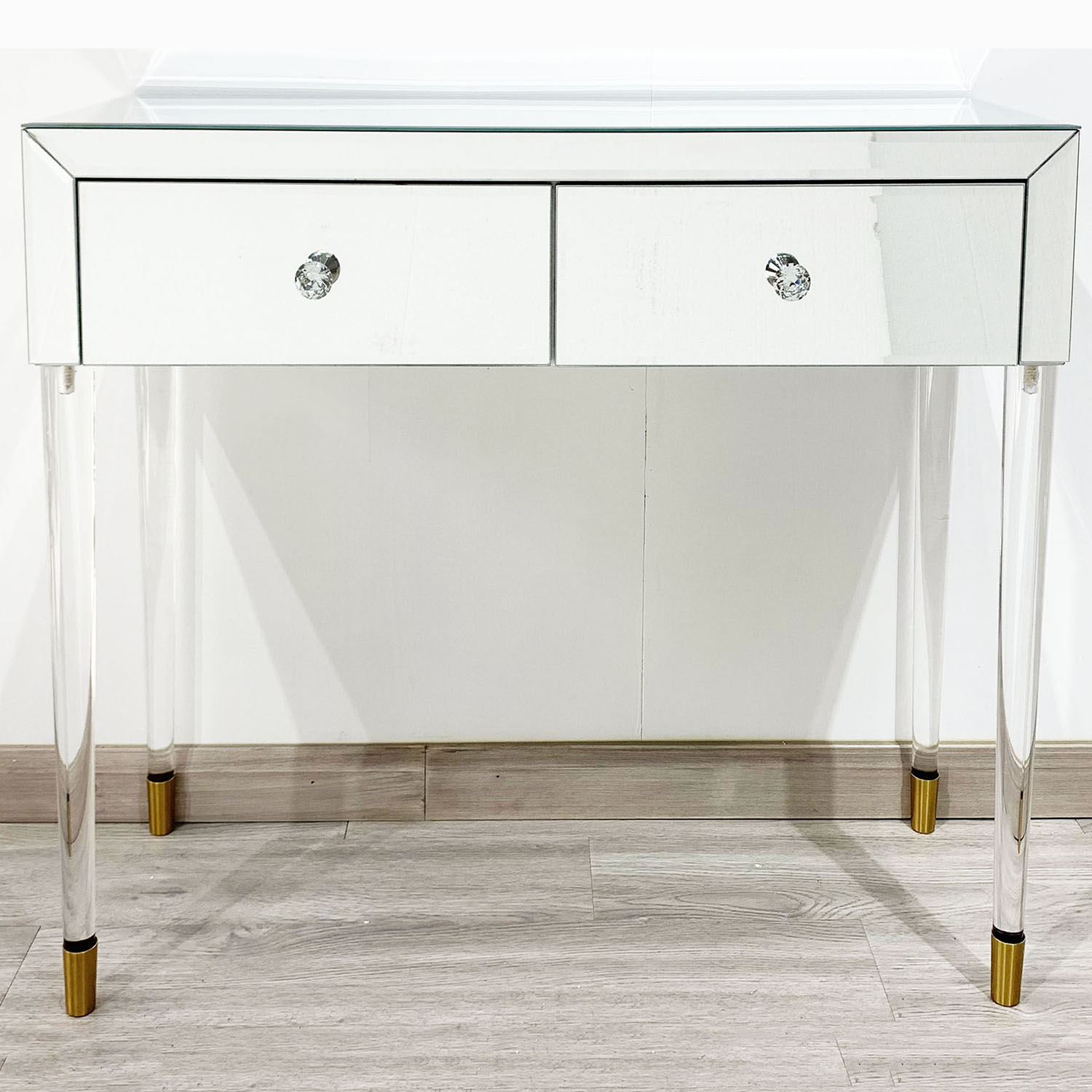mirror console table with acrylic legs, MADE OF 35% WOOD,35% MIRROR,25% ACRYLIC, 5% IRON