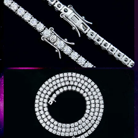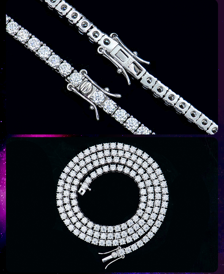 3mm Wholesale Men Women Hip-hop Jewelry 925 Sterling Silver Gra Vvs Mossanite Moissanite Diamond Tennis Chain Necklace