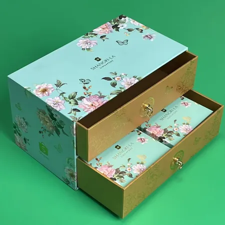 Box with metal ring for puller shows classics . Drawer box design gives more mysterious . Suitable for gift set packaging , Festival's gift packaging .