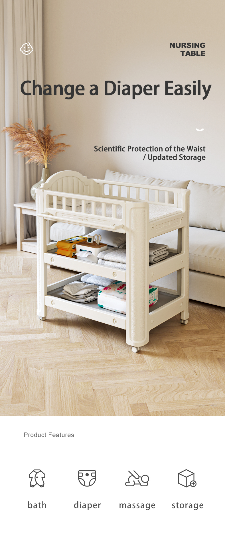 multifunctional baby bed crib bath nursing Table with wheels changing diaper table