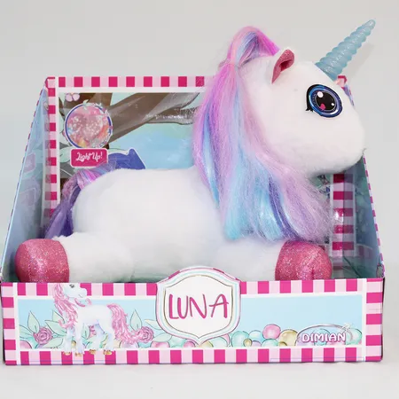 my first luna, when you press her back, you can see the light on the tummy & horn with nature sounds