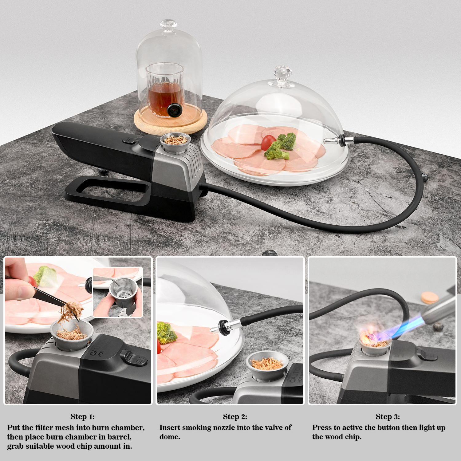SG1202 smoker gun is the latest model with upgraded oil storage cup design, which can reduce the oil blokage inside the machine and can be used for longer time.