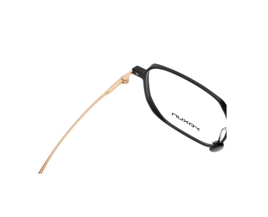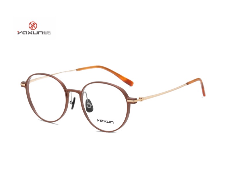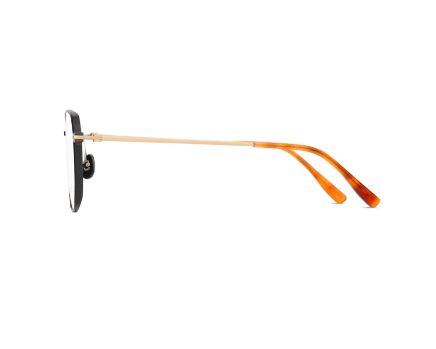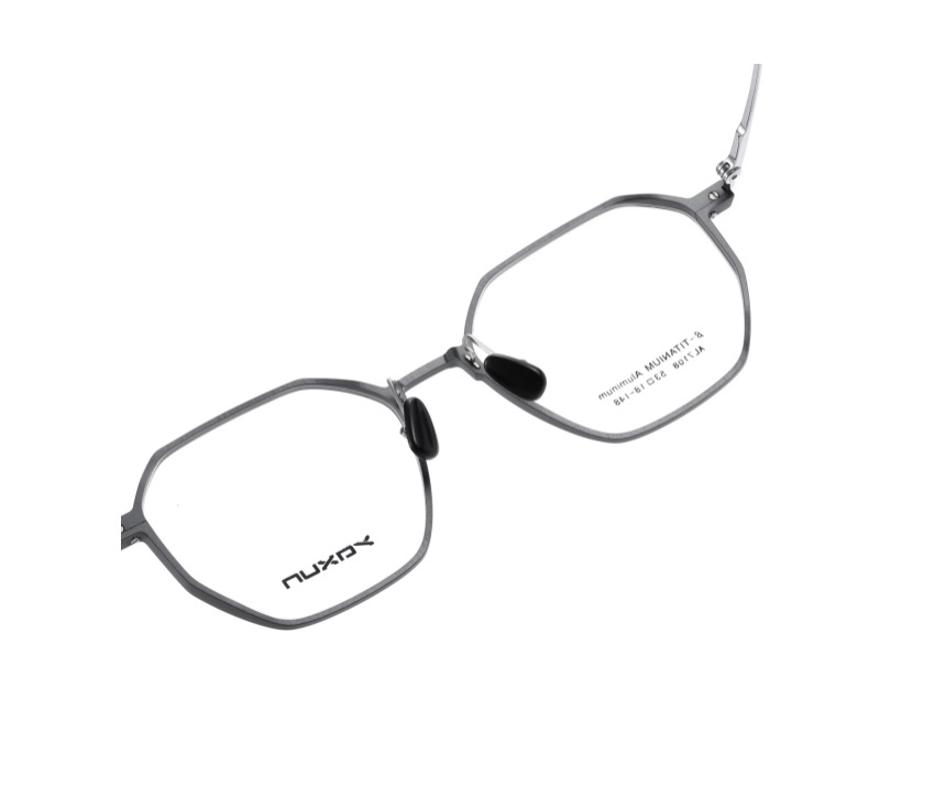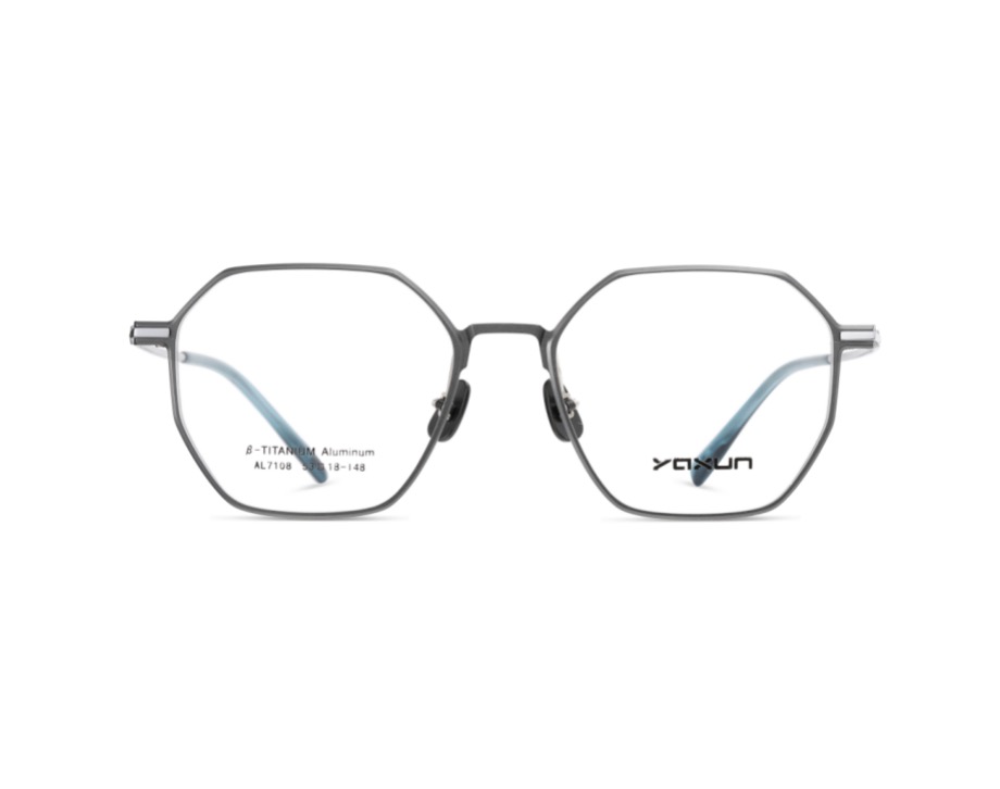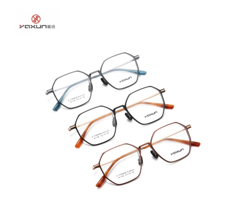 aluminium frame, b titanium temples, acetate temple tips, no screw design