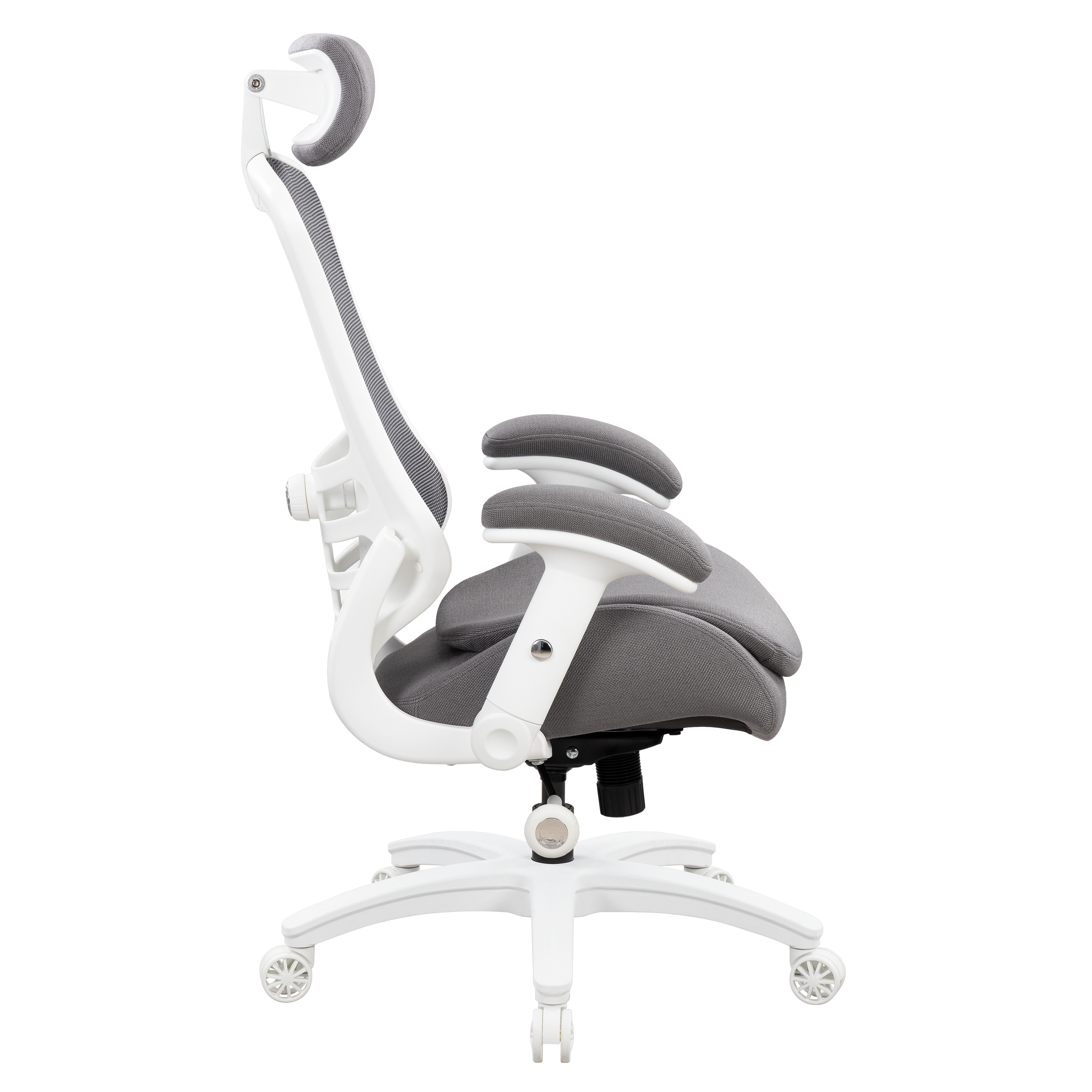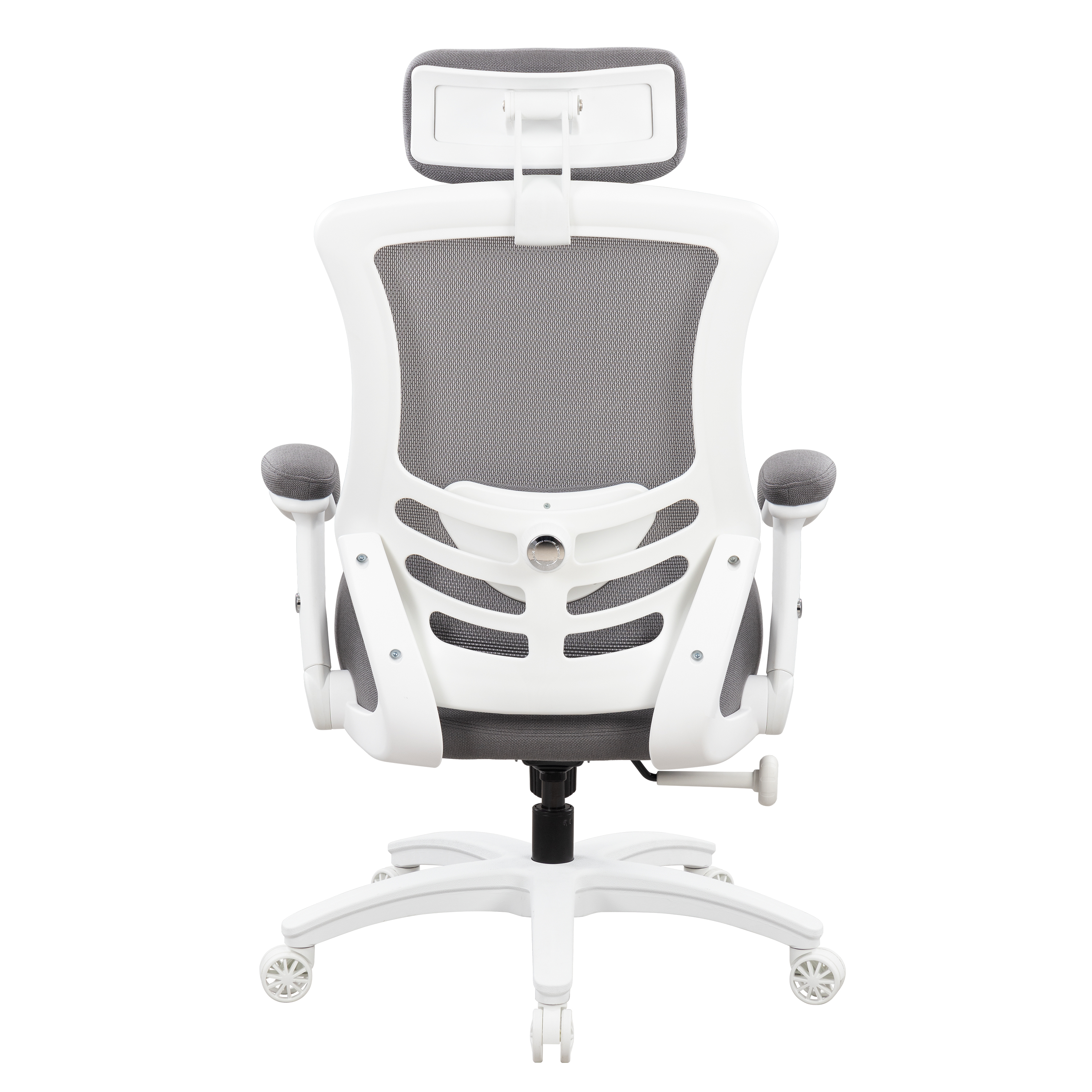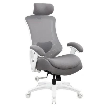 This ergonomic chair offers excellent comfort with adjustable backrest and high cost-performance ratio, making it ideal for prolonged office work, study sessions, or home use. Core Comfort Design Adaptive lumbar support Equipped with an adjustable lumbar support that allows vertical/forward/backward movement, it precisely conforms to the physiological curvature of the lumbar spine, disperses lumbar pressure, and reduces the risk of soreness during prolonged sitting. The mesh waist support features elastic breathability, preventing sweat retention while providing robust support. Breathable mesh backrest Made of high-elasticity gray mesh fabric with excellent breathability, ensuring comfort even during prolonged sitting in summer without causing heat discomfort. The material also features superior elasticity to conform to the natural contours of the back. The S-shaped biomimetic backrest design provides segmented support from the shoulders to the waist, alleviating spinal pressure. Thick and comfortable seat cushion High-density sponge, breathable fabric, provides soft and enveloping seating comfort without collapsing during prolonged sitting. The curvature design conforms to the hip line, dispersing sciatic pressure and enhancing comfort during prolonged sitting. Multidimensional adjustment function Headrest: Adjustable in height/angle for neck support and cervical spine relaxation, suitable for napping or reclining relaxation. Armrest: Soft padding material with adjustable height, designed to fit the arm and reduce shoulder fatigue. Seat height: Adjustable via pneumatic rod to accommodate individuals of varying heights, ensuring stable foot placement. Rearward Locking Function: The chair backrest can be reclined to a locked position, ensuring comfortable posture for both work and short breaks. 360° rotation: Nylon five-star feet, silent roller, smooth movement, and non-scratch flooring. Appearance and Material Color scheme: White frame with gray mesh/grey base, featuring a fresh and minimalist design suitable for modern office and home environments. Frame: Made of high-strength nylon material, lightweight and durable with strong load-bearing capacity. Safety: Certified with air pressure rod safety standards for enhanced user confidence. applicable scene Sedentary office work Home Learning / Esports Long-term reading and writing in the study The population with a height of 155-185 cm is generally suitable for this configuration.