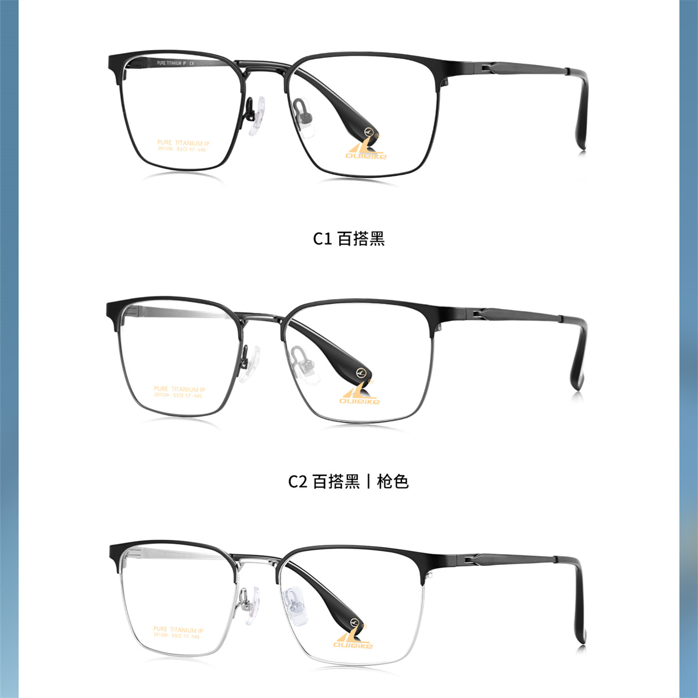 OULEIKE eyewear pure titanium optical glasses frames are lightweight, causing minimal pressure on the nose and ears for enhanced comfort. They're hypoallergenic and suitable for high-power lenses due to their light weight. The IP plating is durable and won't peel off over time. Overall, pure titanium frames are popular for their lightweightness, corrosion resistance, biocompatibility, and variety of styles.