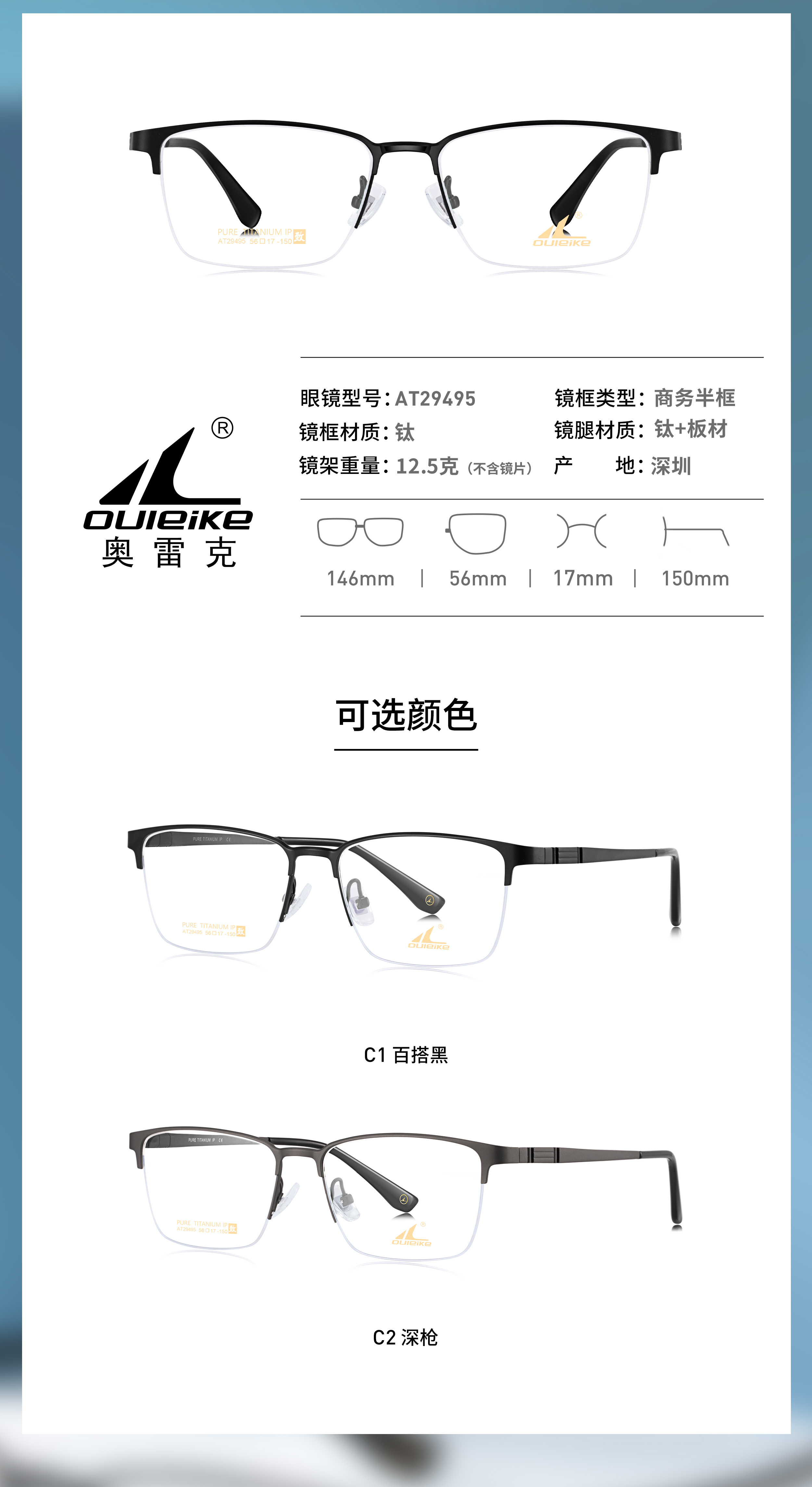 OULEIKE eyewear pure titanium optical glasses frames are lightweight, causing minimal pressure on the nose and ears for enhanced comfort. They're hypoallergenic and suitable for high-power lenses due to their light weight. The IP plating is durable and won't peel off over time. Overall, pure titanium frames are popular for their lightweightness, corrosion resistance, biocompatibility, and variety of styles.