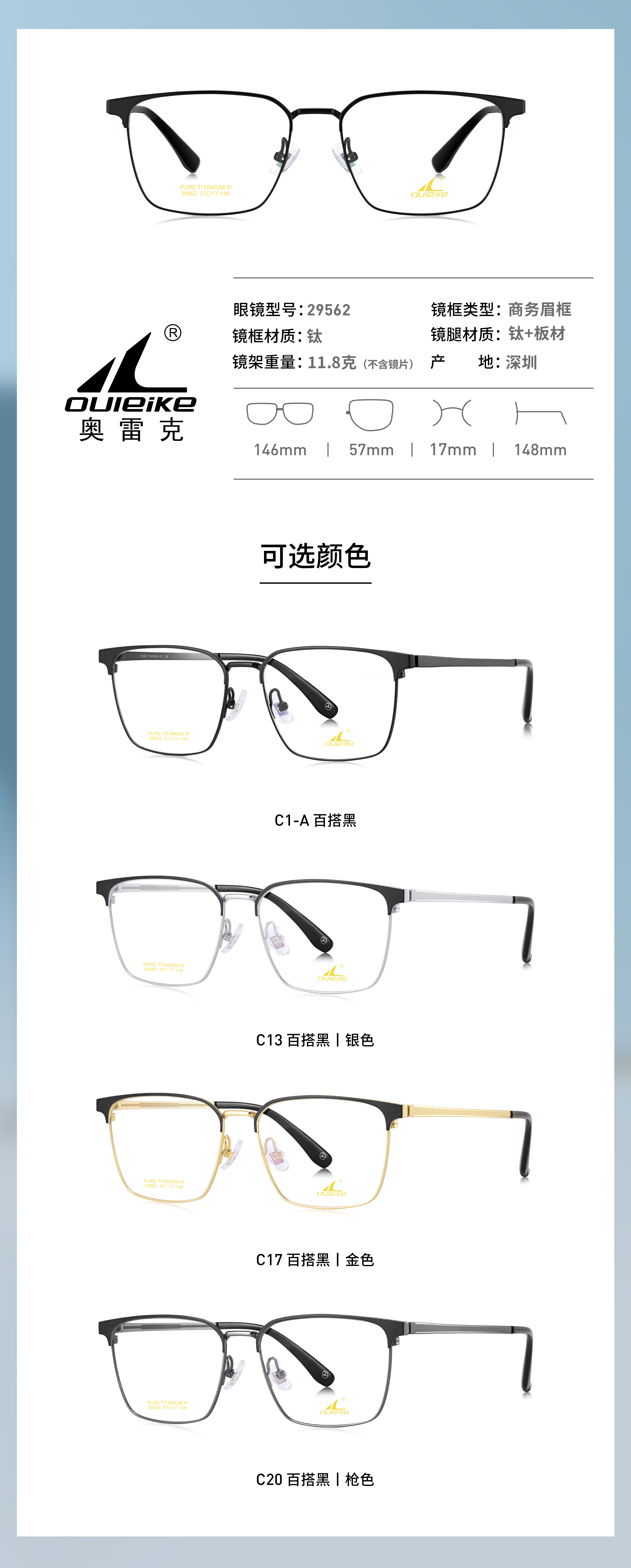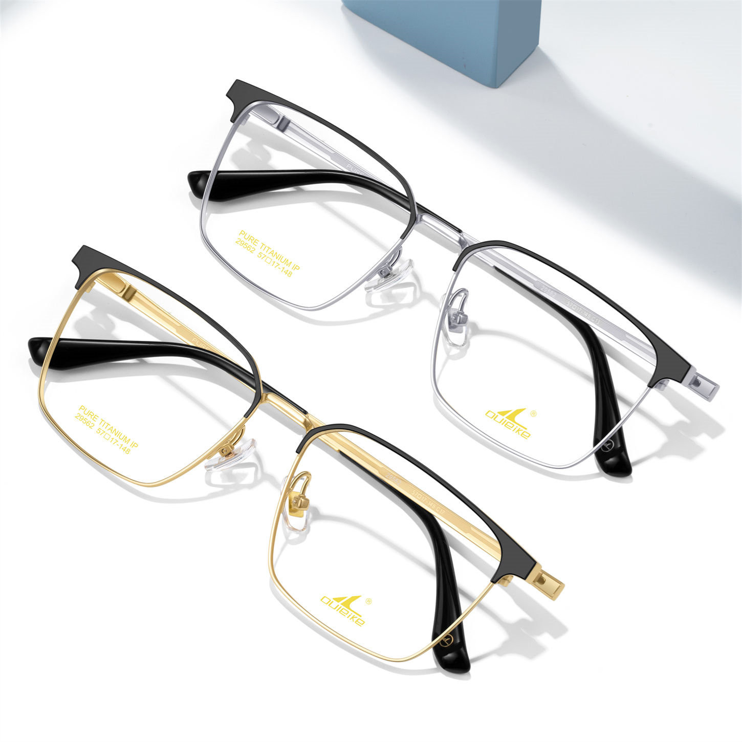 OULEIKE eyewear pure titanium optical glasses frames are lightweight, causing minimal pressure on the nose and ears for enhanced comfort. They're hypoallergenic and suitable for high-power lenses due to their light weight. The IP plating is durable and won't peel off over time. Overall, pure titanium frames are popular for their lightweightness, corrosion resistance, biocompatibility, and variety of styles.
