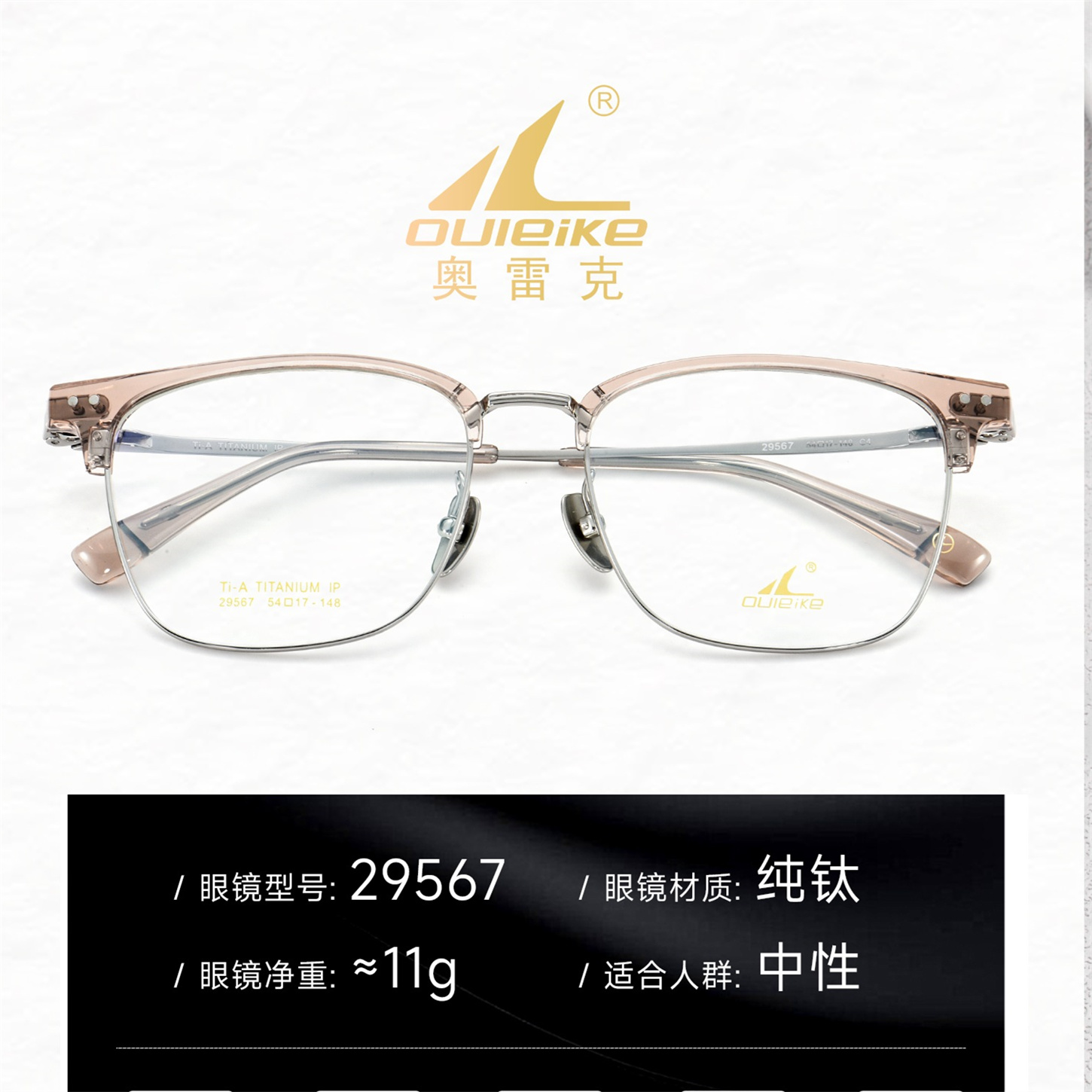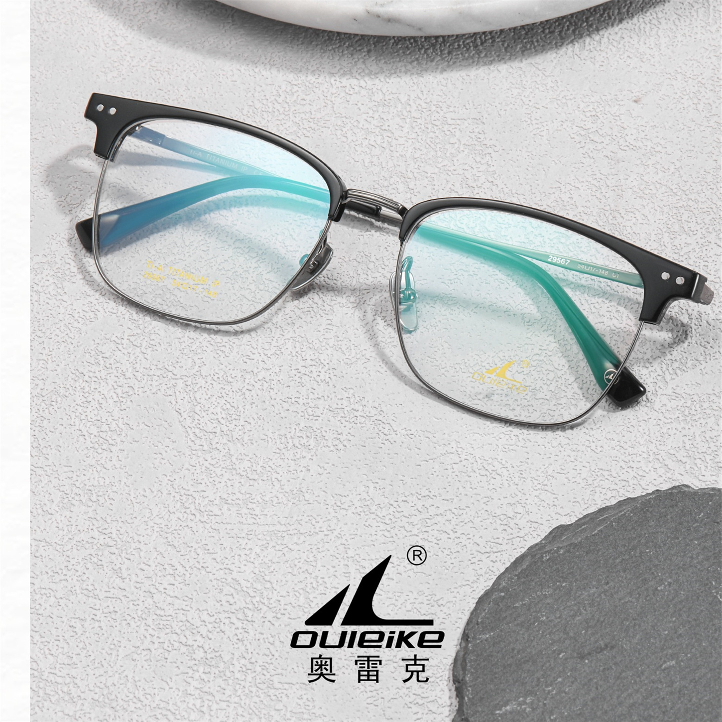 OULEIKE eyewear pure titanium optical glasses frames are lightweight, causing minimal pressure on the nose and ears for enhanced comfort. They're hypoallergenic and suitable for high-power lenses due to their light weight. The IP plating is durable and won't peel off over time. Overall, pure titanium frames are popular for their lightweightness, corrosion resistance, biocompatibility, and variety of styles.