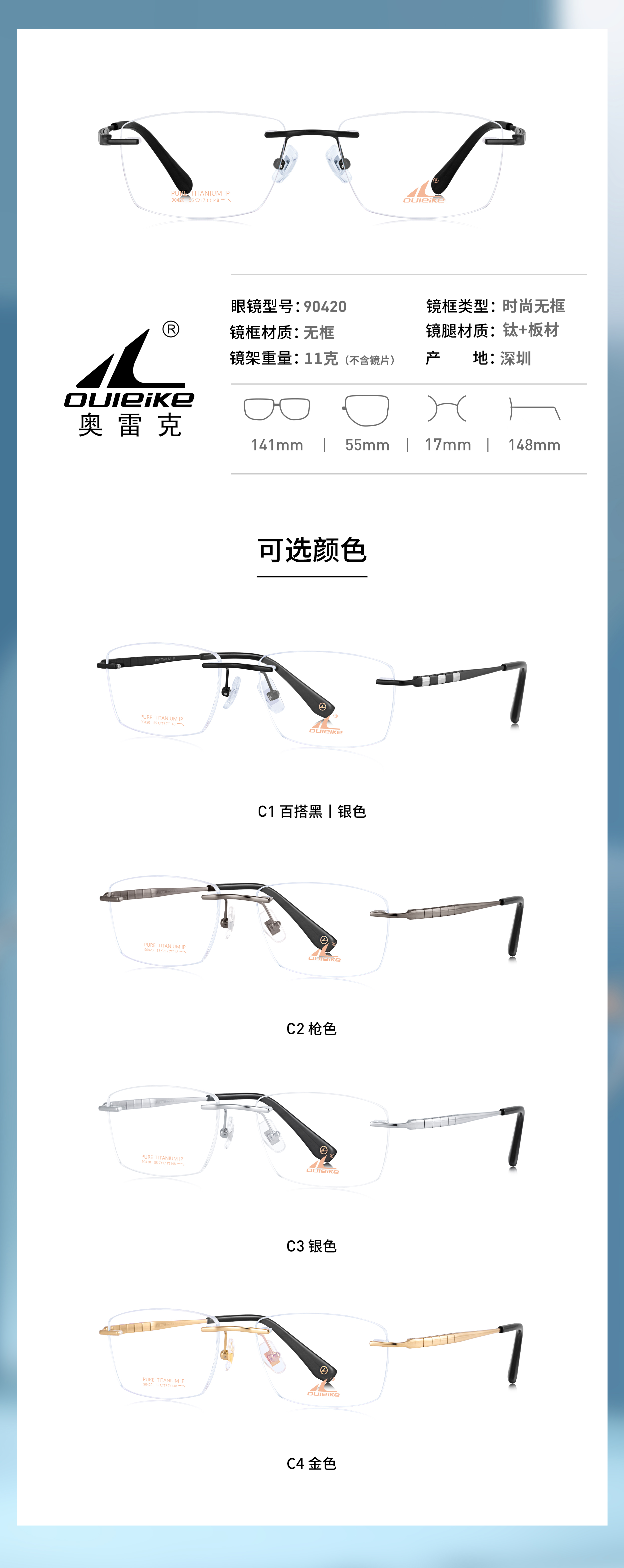 OULEIKE eyewear pure titanium optical glasses frames are lightweight, causing minimal pressure on the nose and ears for enhanced comfort. They're hypoallergenic and suitable for high-power lenses due to their light weight. The IP plating is durable and won't peel off over time. Overall, pure titanium frames are popular for their lightweightness, corrosion resistance, biocompatibility, and variety of styles.