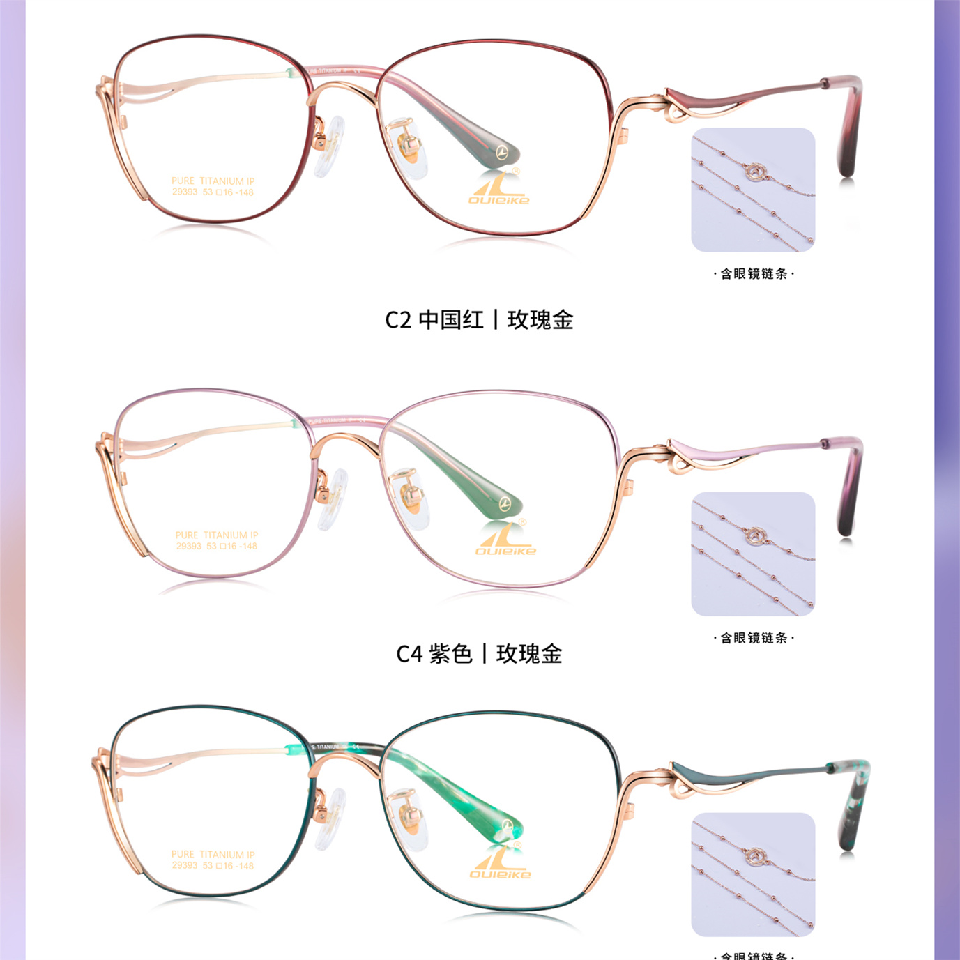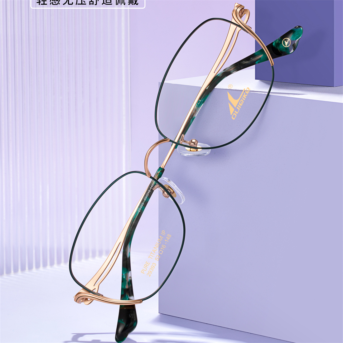 OULEIKE eyewear pure titanium optical glasses frames are lightweight, causing minimal pressure on the nose and ears for enhanced comfort. They're hypoallergenic and suitable for high-power lenses due to their light weight. The IP plating is durable and won't peel off over time. Overall, pure titanium frames are popular for their lightweightness, corrosion resistance, biocompatibility, and variety of styles.