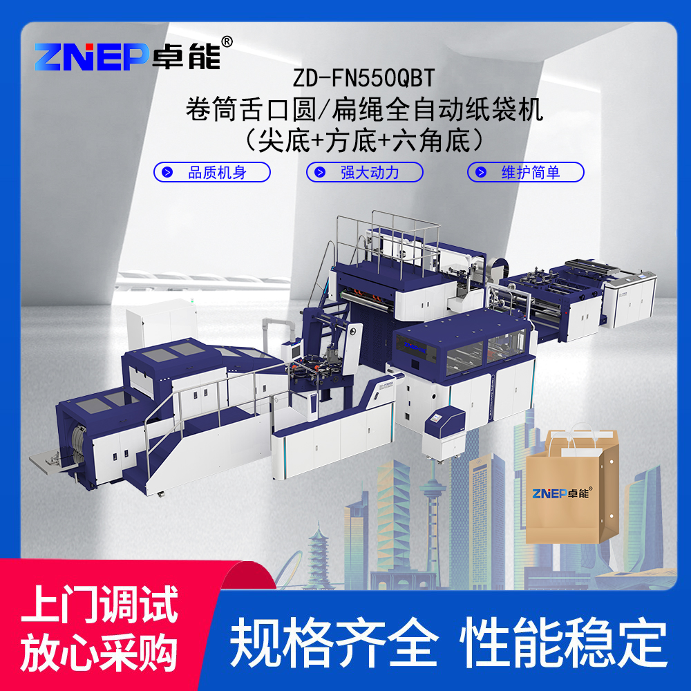 automatic roll feeding paper bag making machine with rope/flat handles and top-folded series