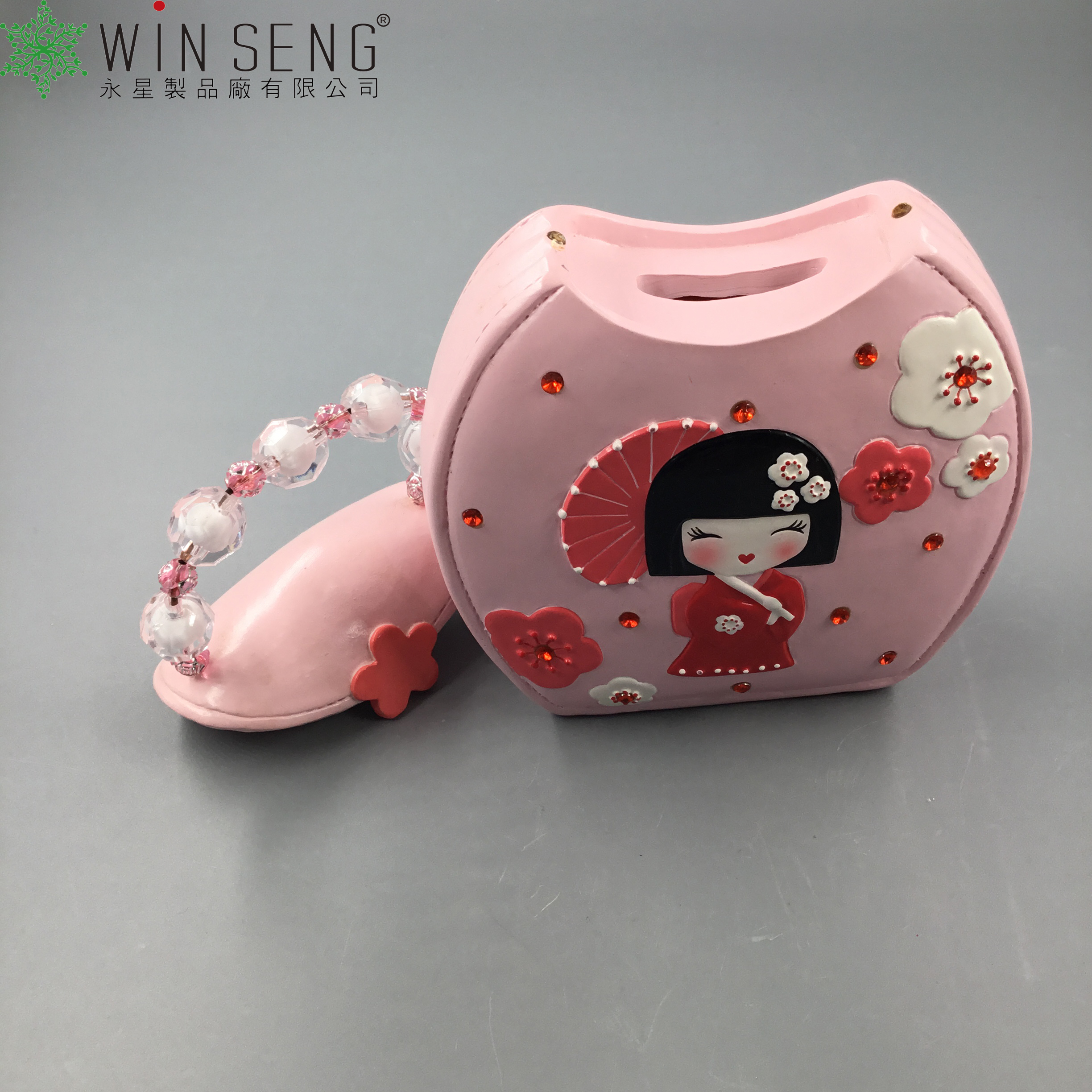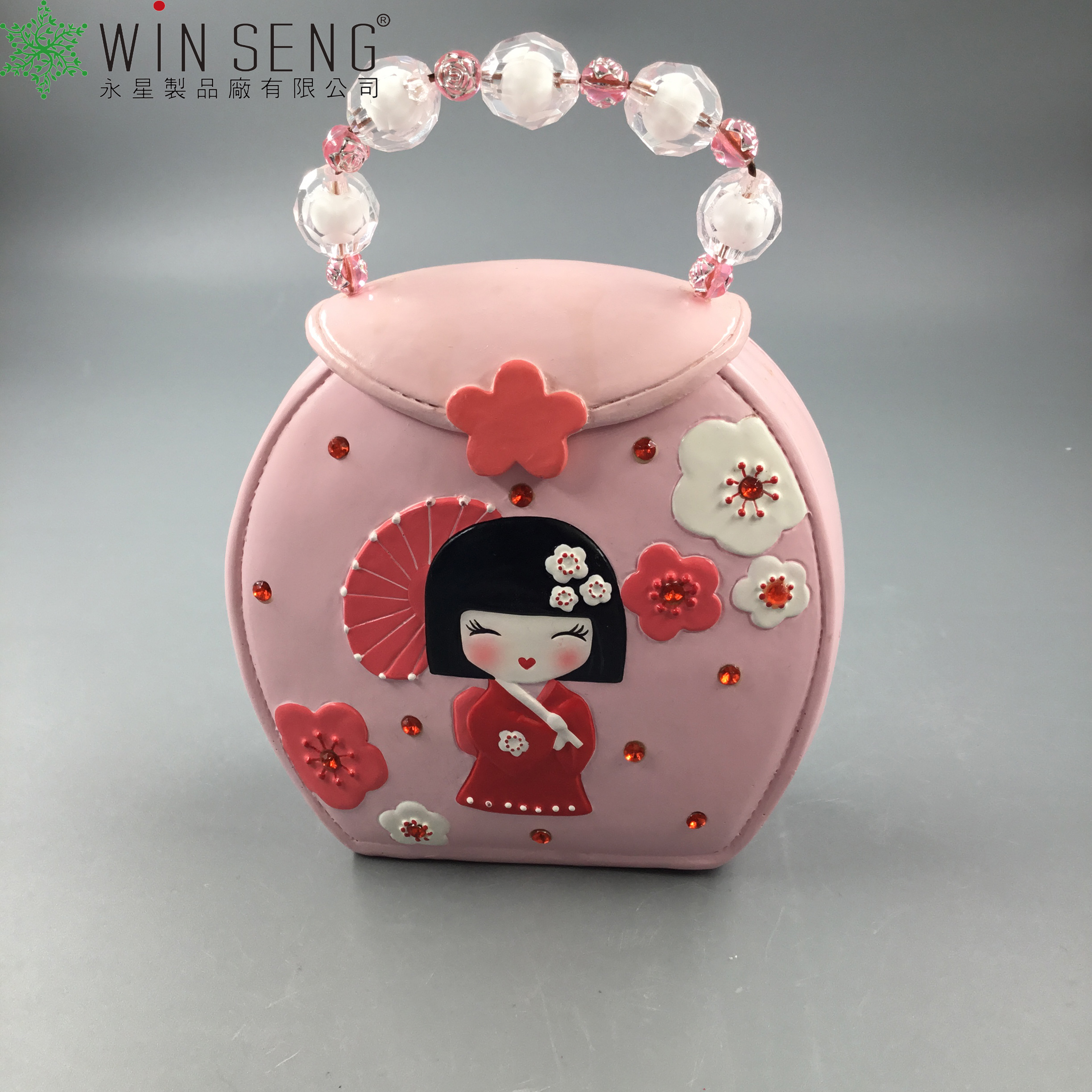 porcelain Japanese doll hang bag shape money bank