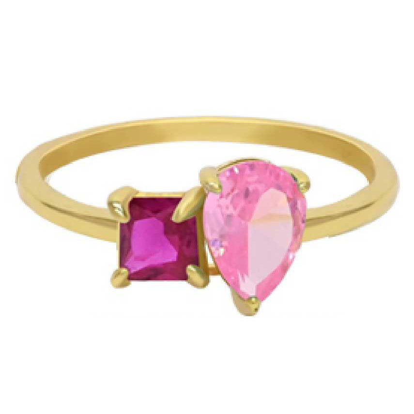 -- 925 silver ring in gold plating adorned with red corundum and CZ