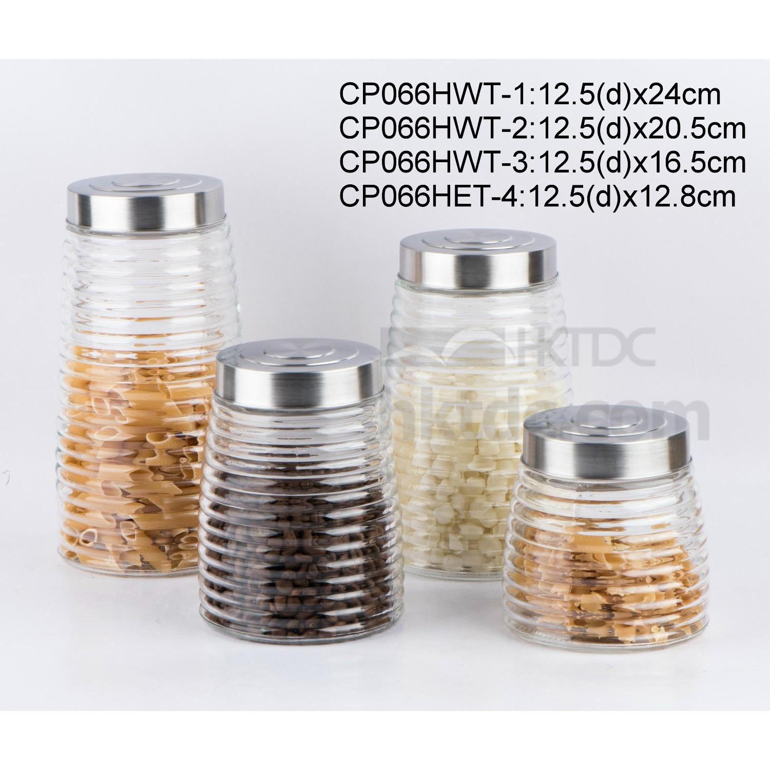 round glass storage jar with s.s. lid with embossed design