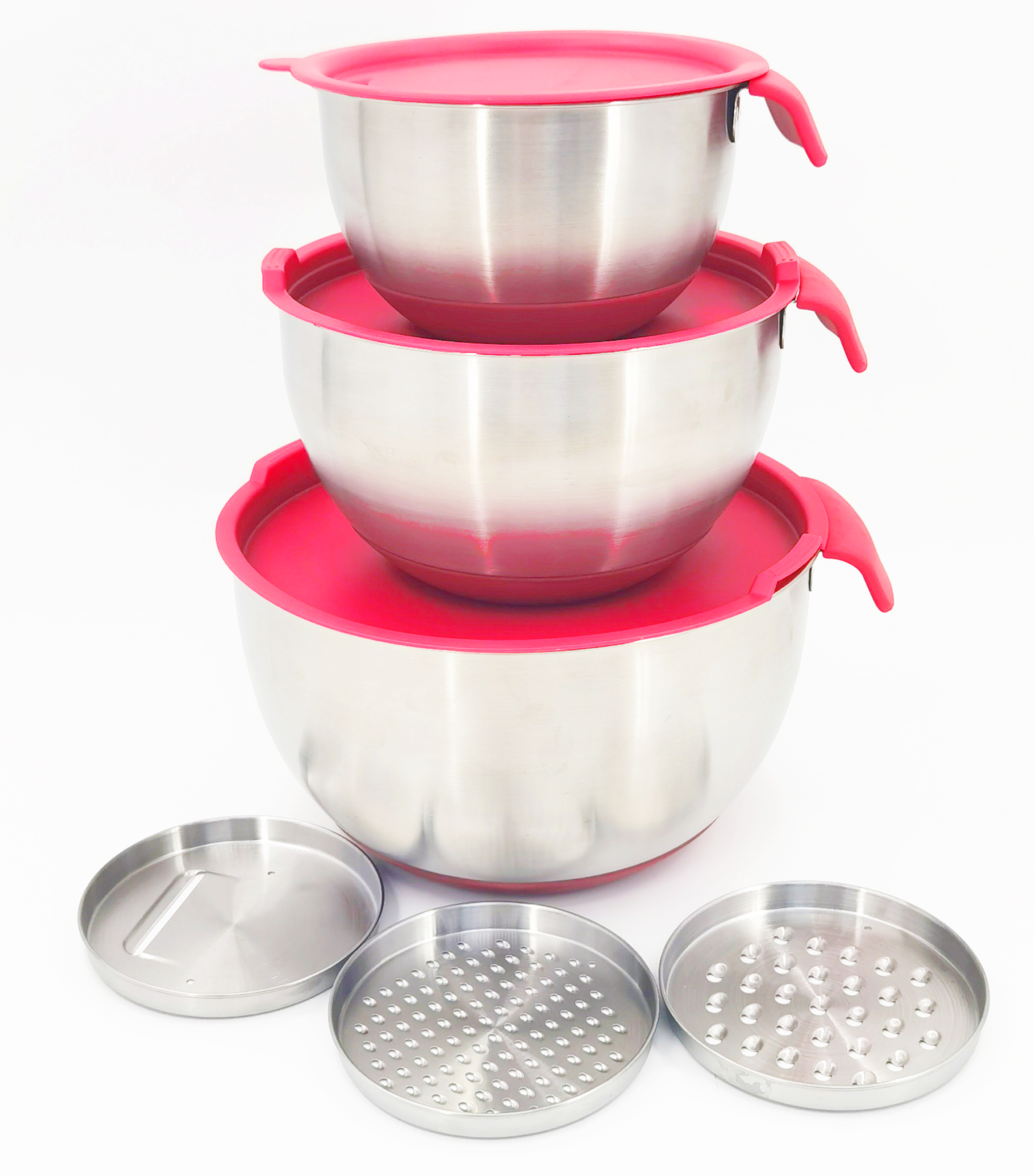 Including: 3 bowls with lids, 3 graters:Dia 12*1.4CM each,