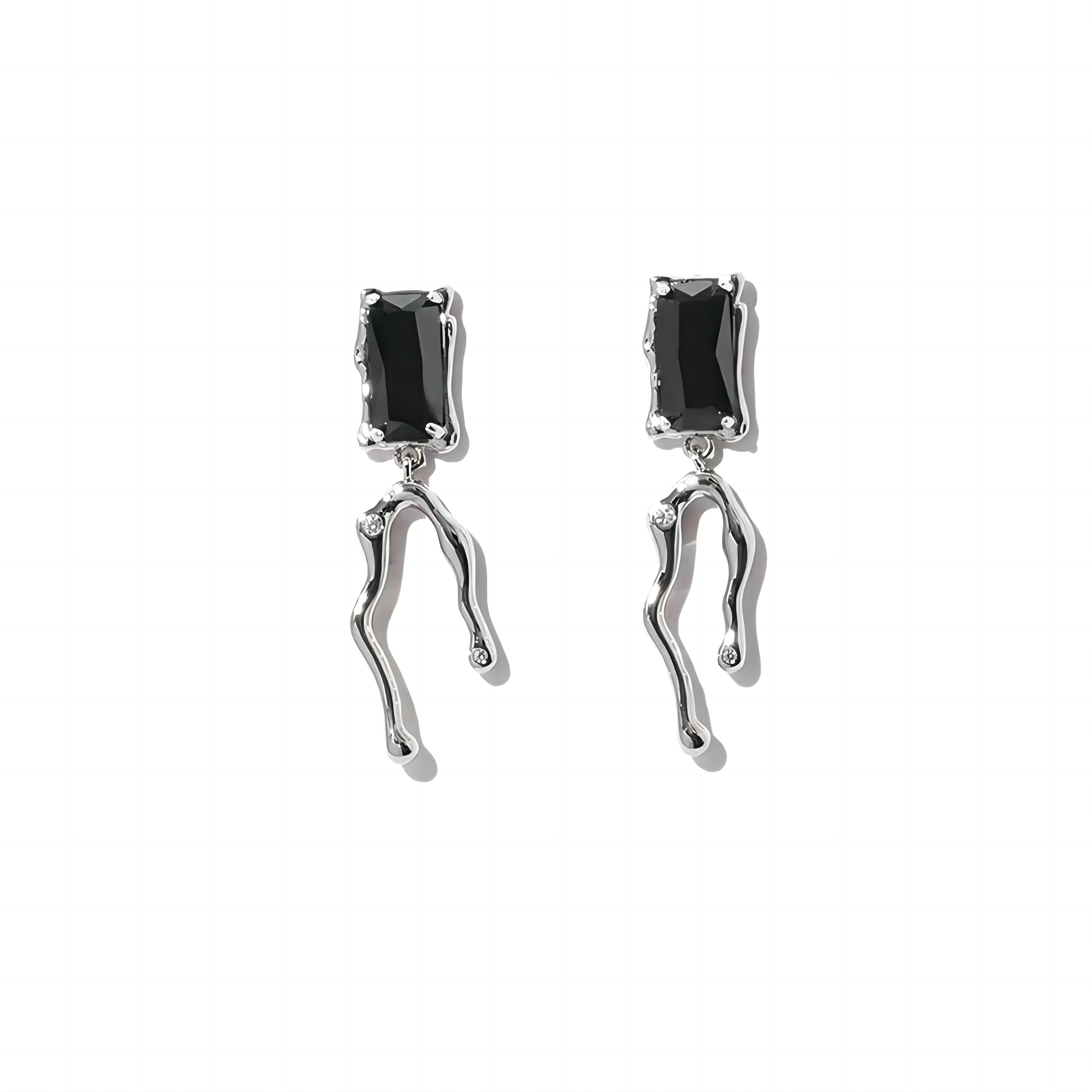 silver earrings,branch shape, irregular earrings,black CZ,rhodium plated