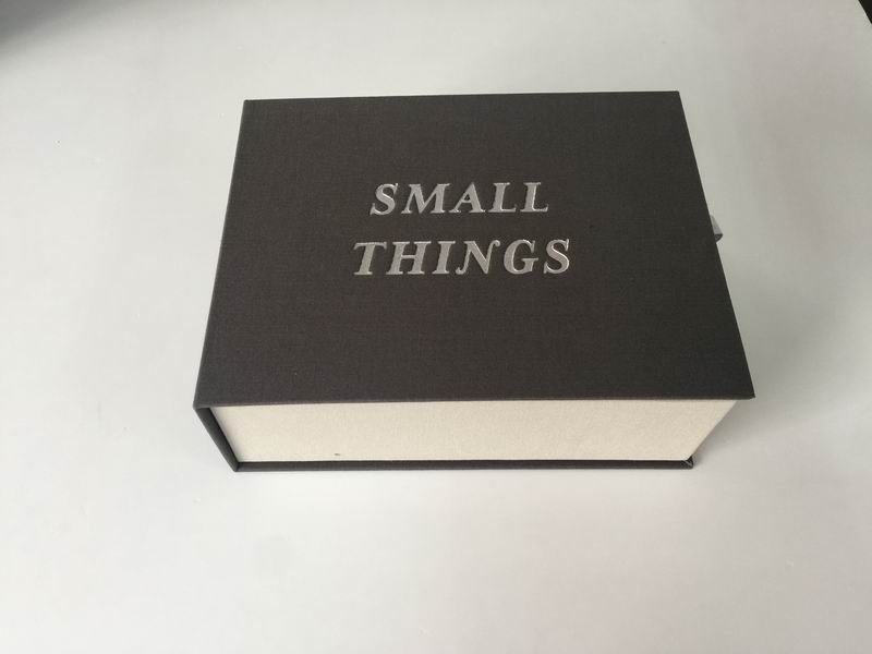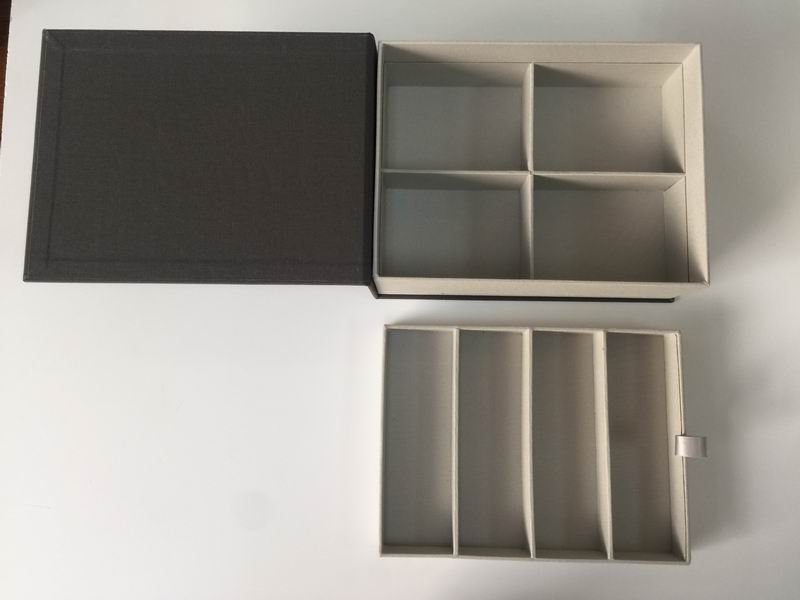 Fabric cover small thing box with upper detachable tray. each pcs shrinkwrap with label