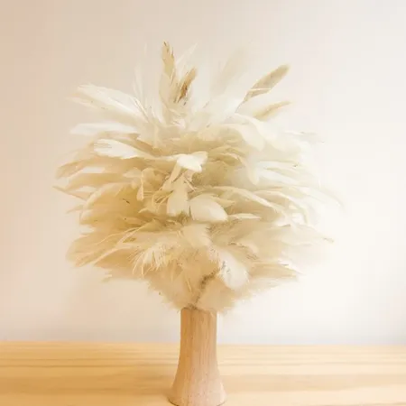 White feathers are silky feathers. In traditional times, white feathers are a sexual prop that can turn evil into good luck. Paired with the warm beech, it becomes a good helper in the home space. Both practical and decorative.