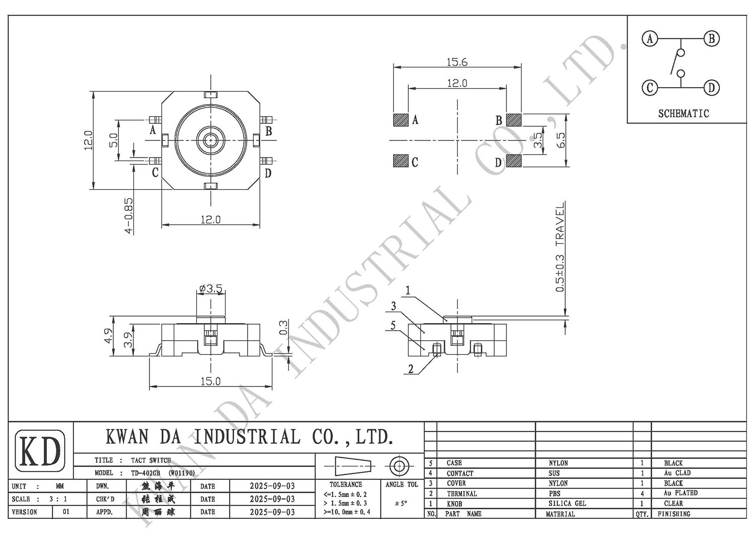 Dielectric Strength(V) | AC 500V FOR 1 MIN |