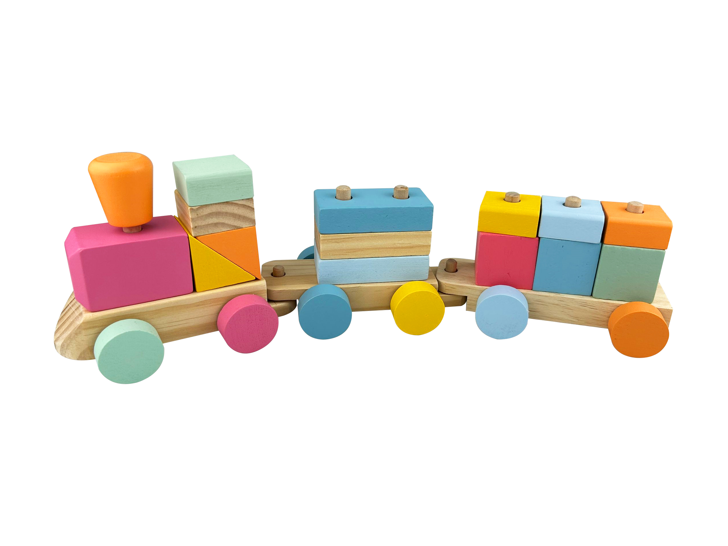 Children's Fun Mini Train, freely disassembles and reassembles, develops patience, promotes intelligence and growth.Soft colors protect the eyes, and the geometric-shaped train helps children learn to establish various basic concepts.Let the baby experience the principle of the moving train and the joy of driving the train through happy play.