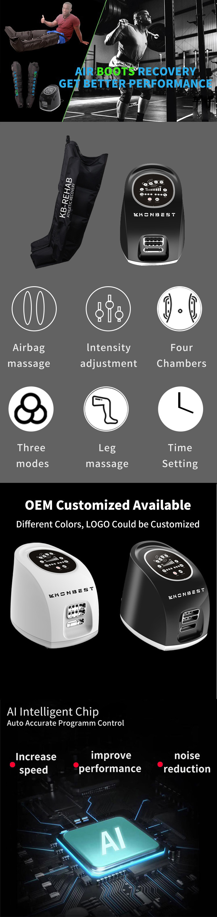 Air chambers and air pumps are used to produce air compression massage for the legs and waist. Through the repeated sequential and intermittent inflation and deflation of the air chambers, air compression therapy is effective in promoting good blood and lymph circulation, improving metabolism and expanding blood vessels in the body. IPC therapy as a physical therapy method which is widely adopted by physiotherapist to make treatment for lymph edema relief, poor blood circulation, sports recovery, limb paralysis and limb pain relief.
