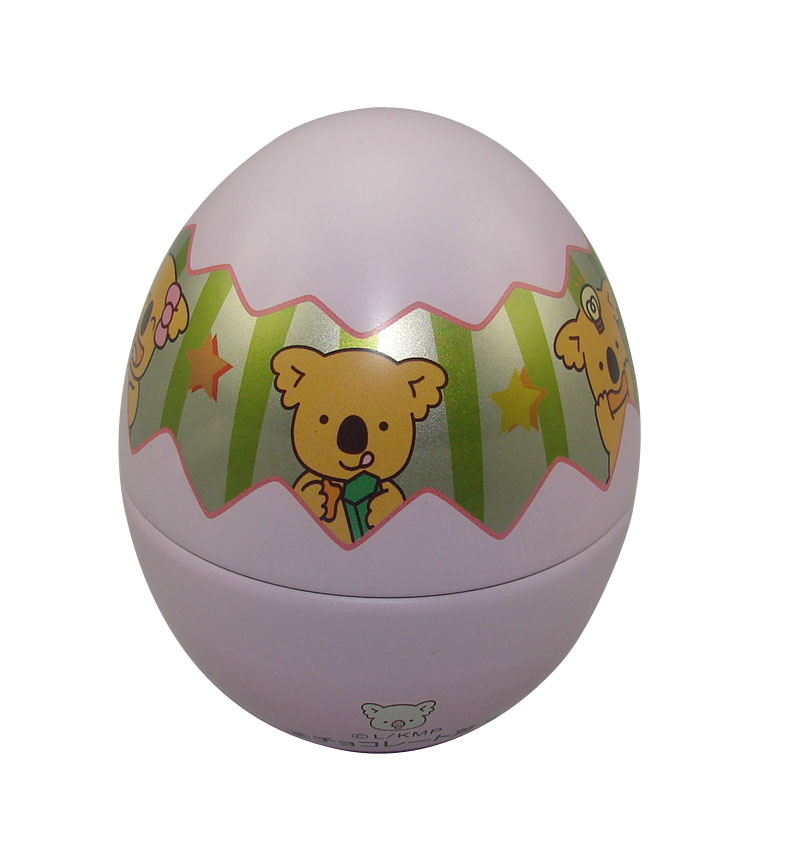 This is an egg-shaped tin can made of high-quality tinplate, designed for cute and playful storage and gifting:
