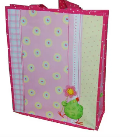 This laminated shopping tote bestows a spacious compartment and is garnished with durable handles and sturdy base for holding your belongings with superb comfort. Boasting a cheerful pinkish tone in three laminations, this stylish bag is doubtlessly a perfect shopping buddy for ladies.
