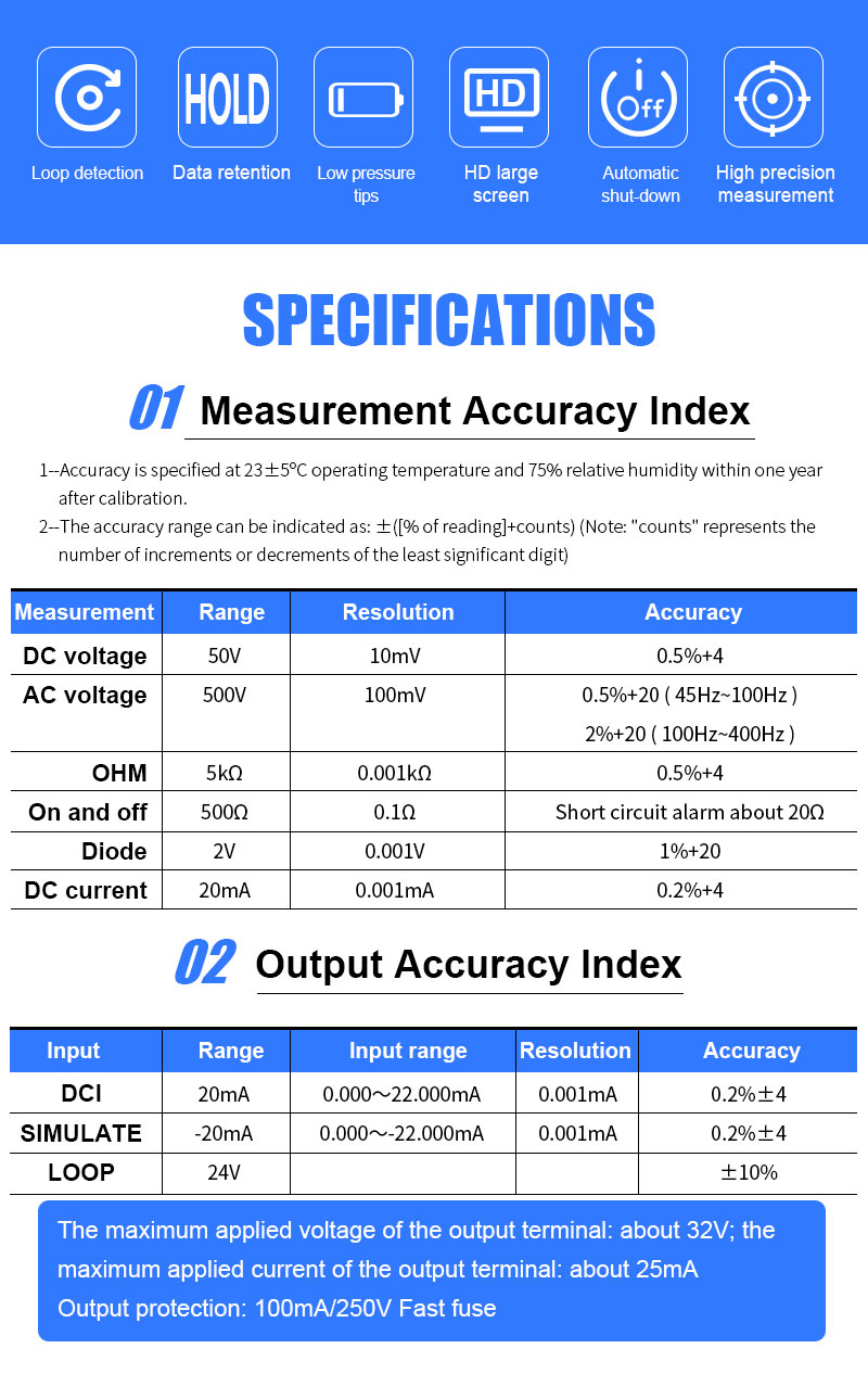 Measuring the highest accuracy of 0.5%, Current measurements show 5, The remaining 4 display.