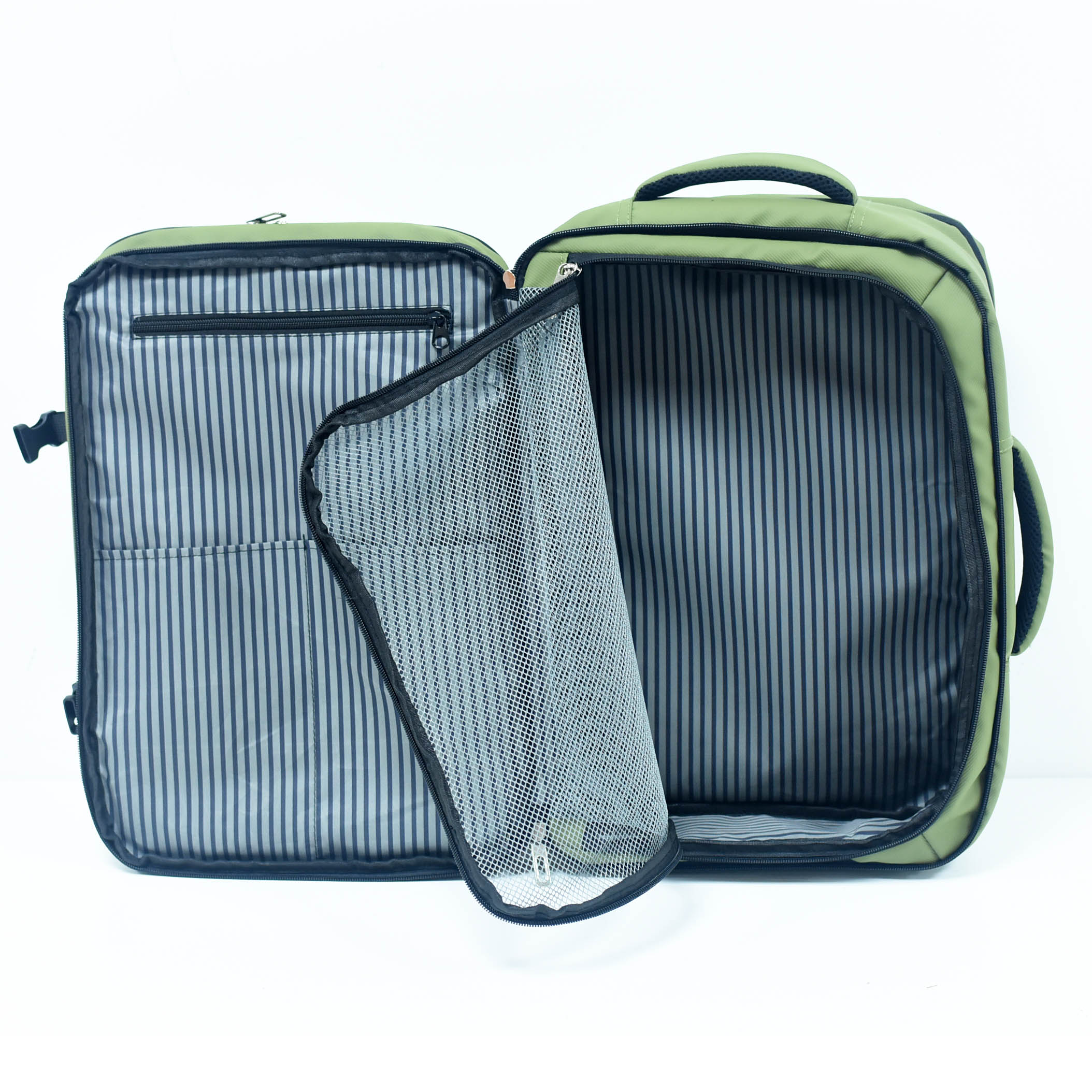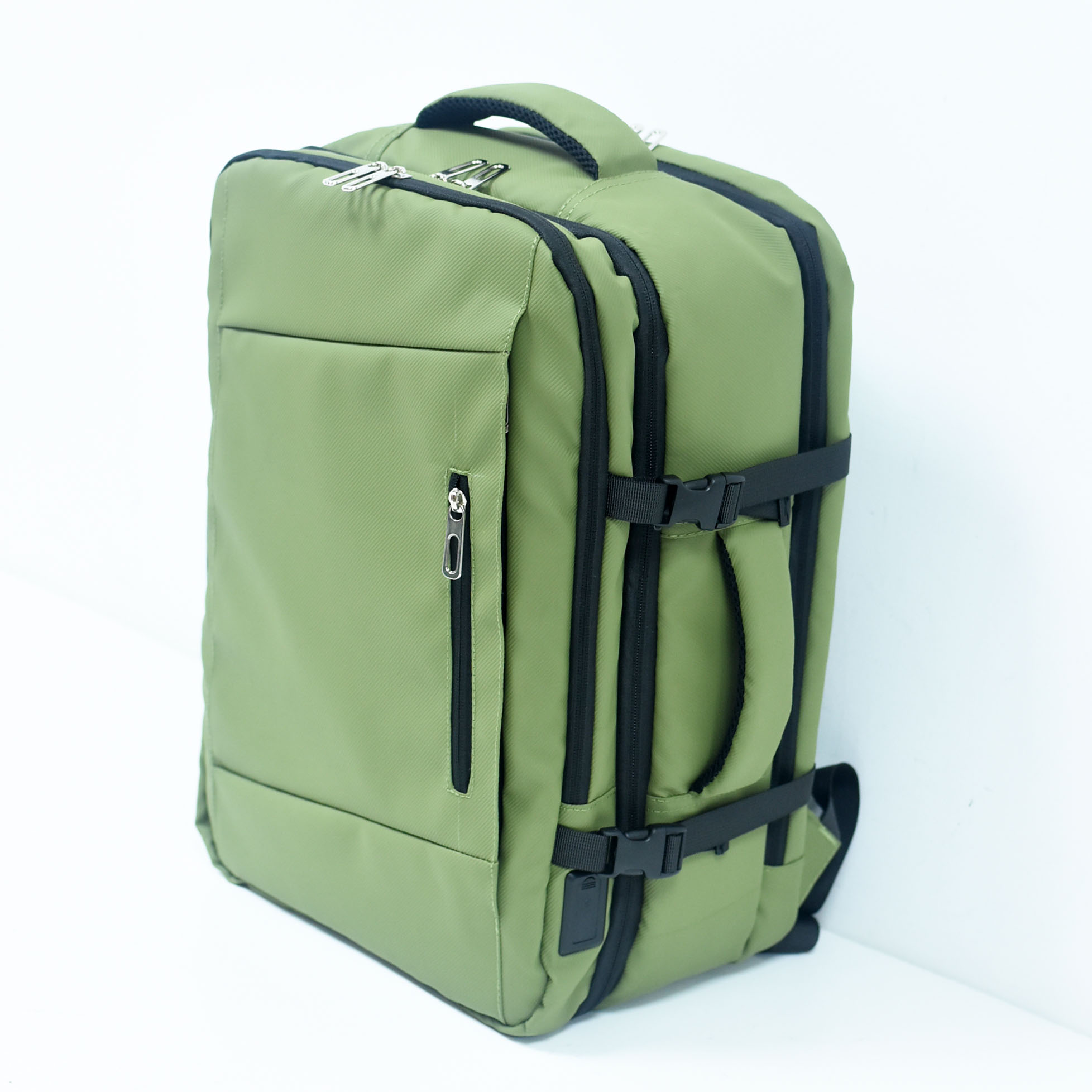 It is a spacious and multifunctional backpack, ideal for travel purposes. Given its carry-on compliant dimensions, it can be brought onboard as hand luggage, eliminating the need to wait for checked baggage upon disembarking from the plane.