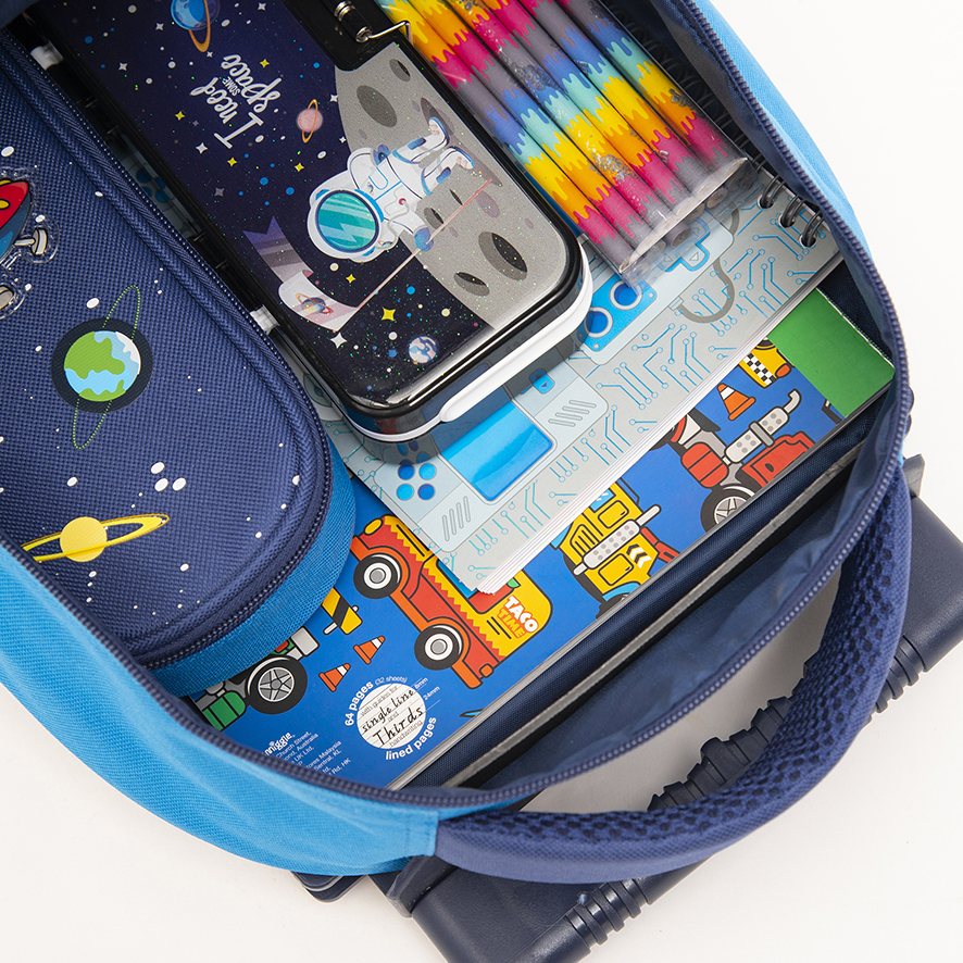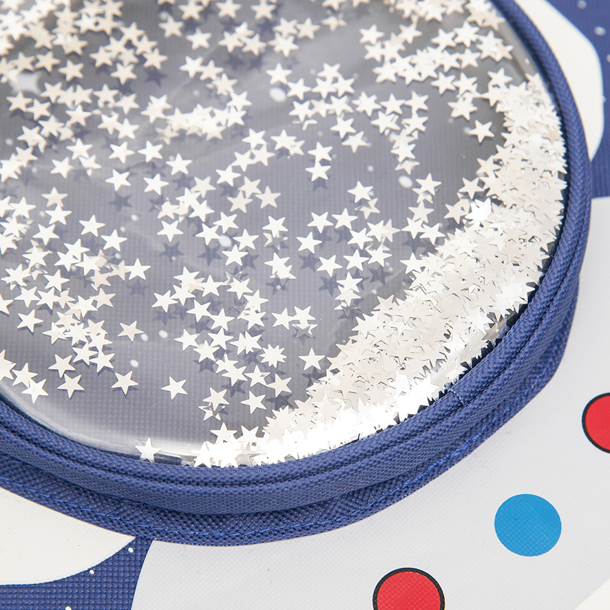 This school bag set is high end design, 3D carton spaceman pattern, with glitter powder, charming and funny.