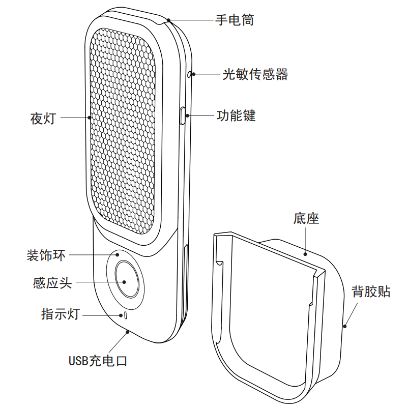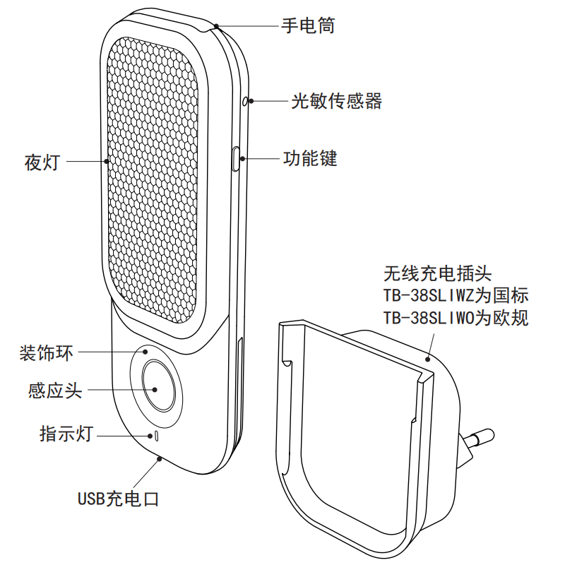wireless charging Wall Lamp electric hand torch night light