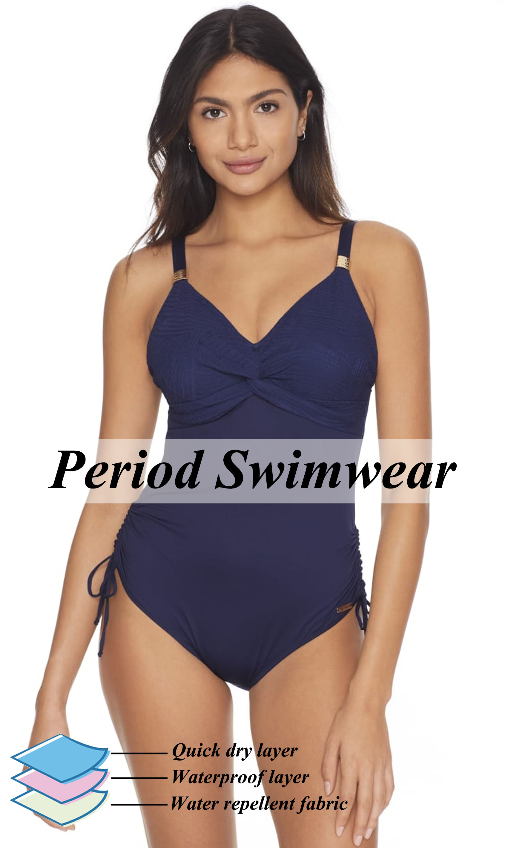 Built in Absorbency: menstrual period swimwear built in comfort fast drying 100% absorbent organic cotton lining and leakproof layer which can holds up to 10 ml worth of protection. Our Period swimwear for women can be used alone on light and medium days, or as an extra layer of protection on heavy days to avoid leaks or stains when doing water activities
