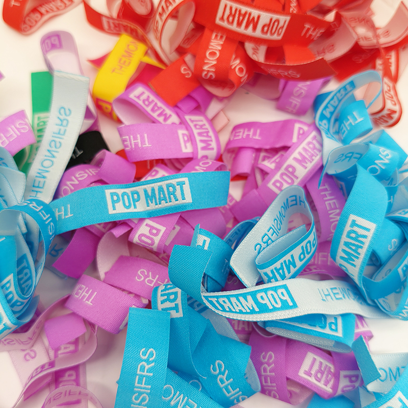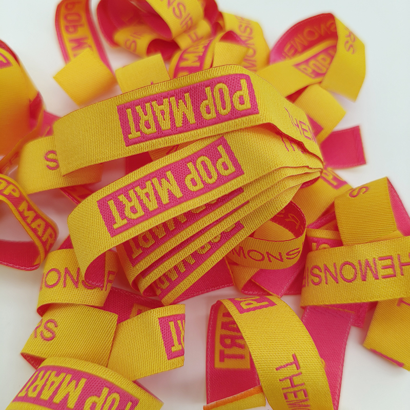 Woven tape labels, embroidery techniques, applied to the labels of toys, vinyl dolls, and plush toys