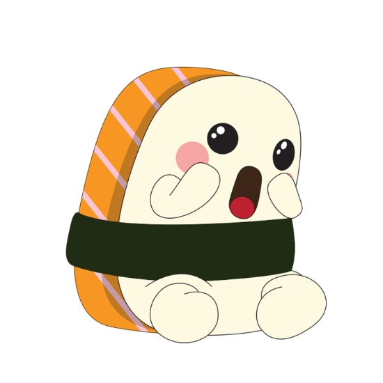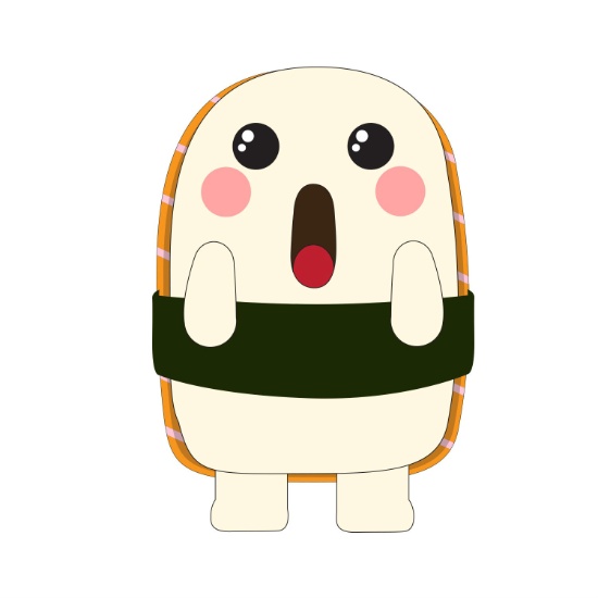 Terrified sushi is a novel and unique cartoon character that is cowardly yet adorable, who gets scared easily of anything surrounding or happening to it. Oozing cuteness unintentionally with the watery eyes and ruddy cheeks on its screaming face, it will definitely bring extra value to a wide variety of products.