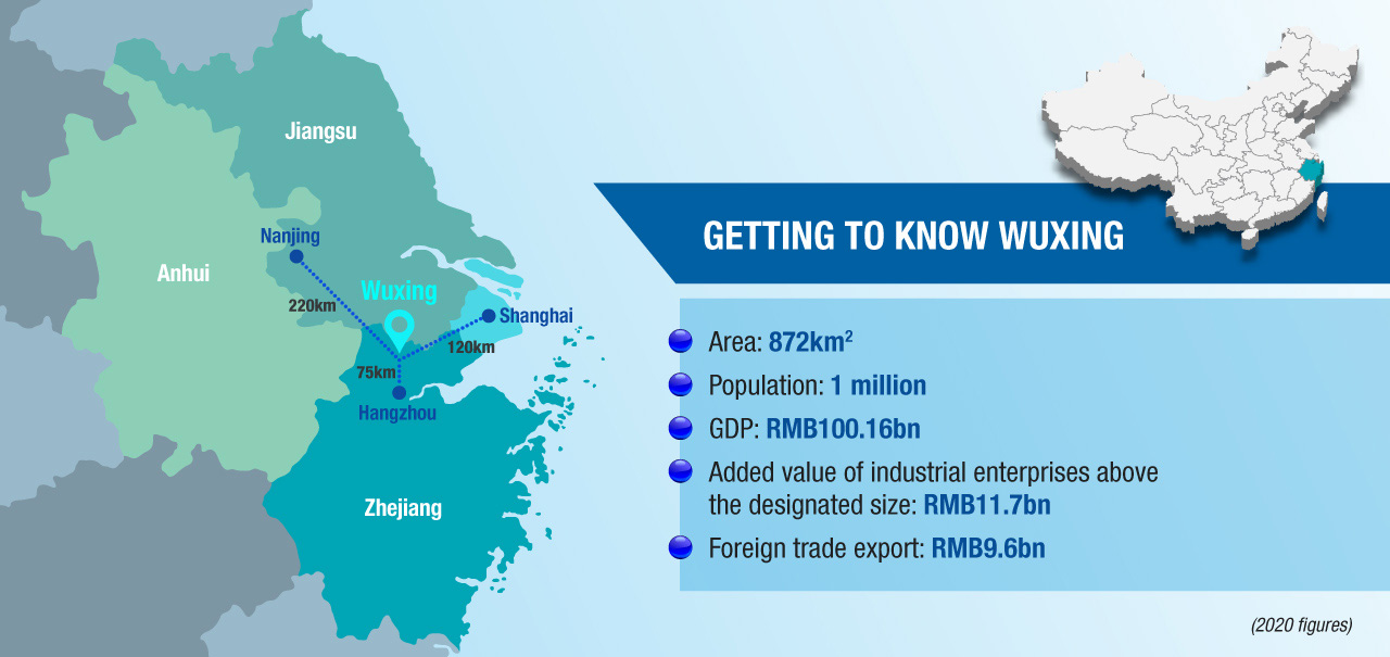 Wuxing is the birthplace of the culture of silk, tea, calligraphy and painting, as well as the country’s beautiful villages. For many years, Wuxing has been shortlisted in all the categories of Mainland China’s top 100 districts list — comprehensive strength, green development, investment potential, technological innovation and new urbanisation quality. In 2020, the district was named one of the top 100 areas in the country in terms of high-quality development, industrial performance, business environment and comprehensive strength in tourism, and was the best in the country in urban and rural planning. In addition, it is a demonstration area of the development of ecological civilisation in Mainland China.