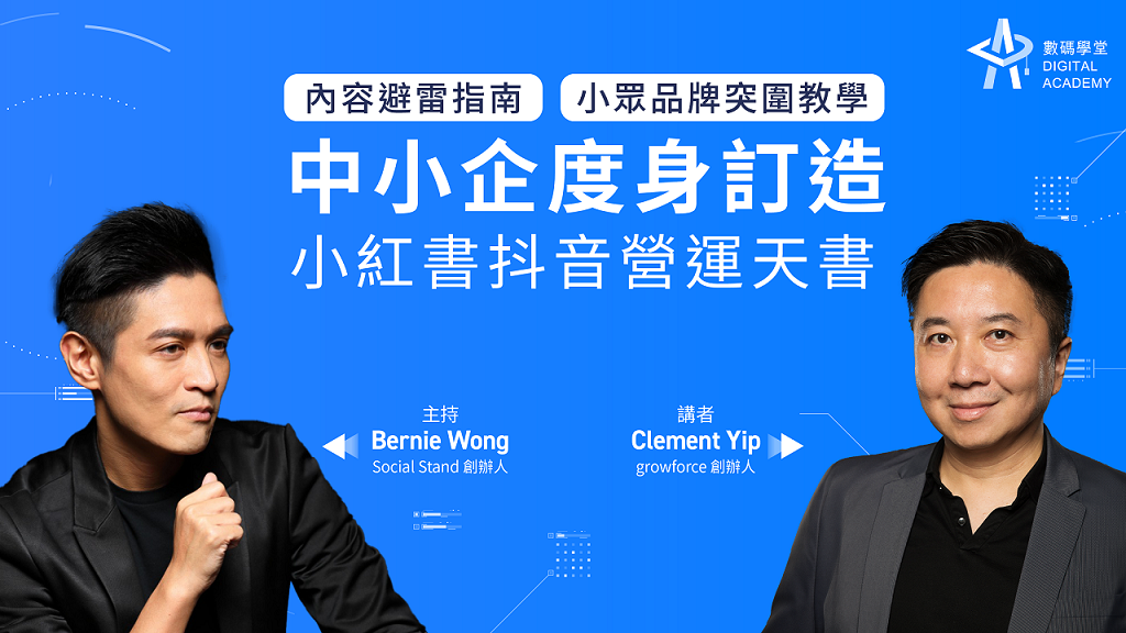 小紅書及抖音是進入內地市場的「必經之路」,但不少香港中小企苦心經營,但流量一直未見起色,更不知如何變現。超過20年中國營銷經驗,growforce創辦人Clement Yip,向大家分享中小企小紅書及抖音營運思路,及發掘潛在客戶內容規劃方案。